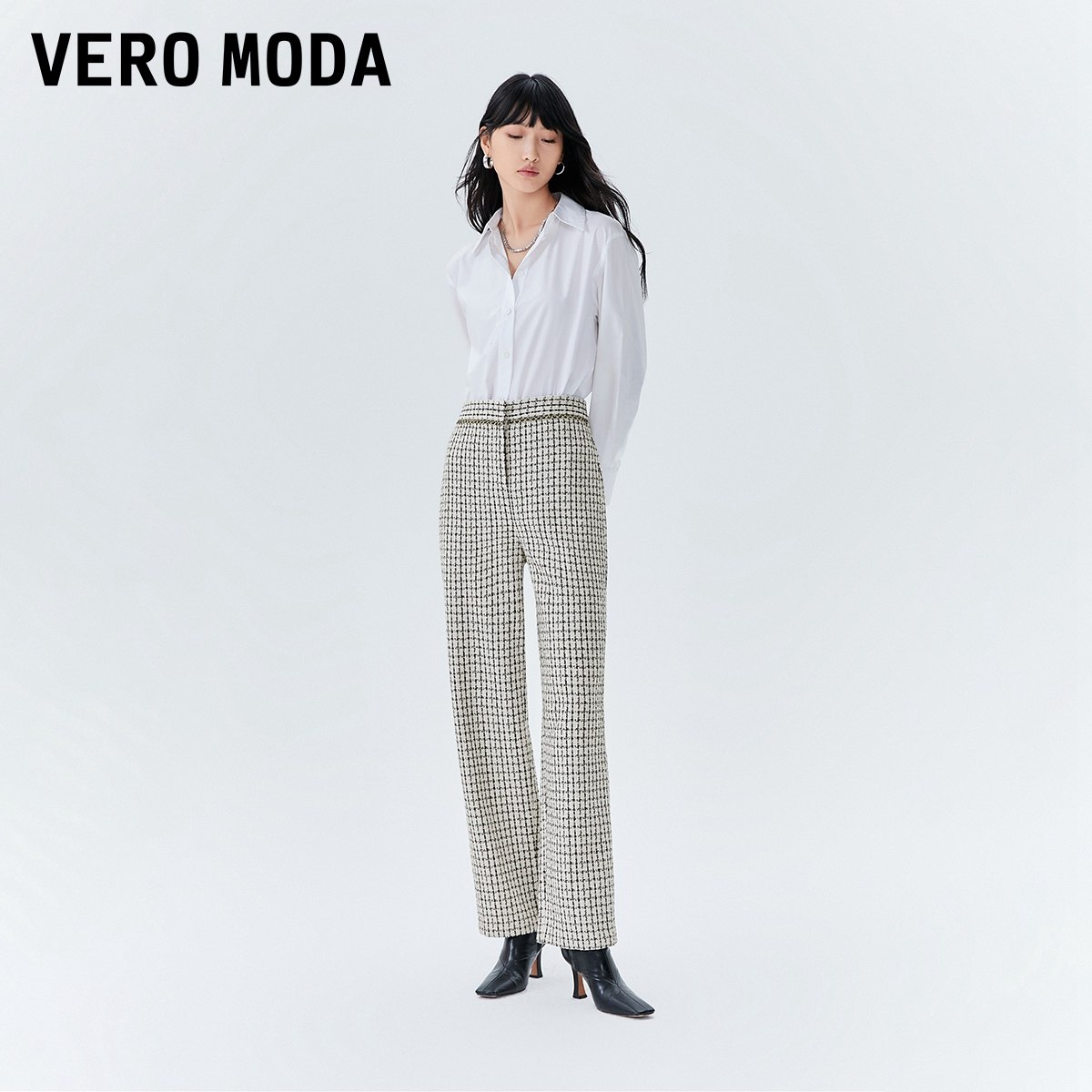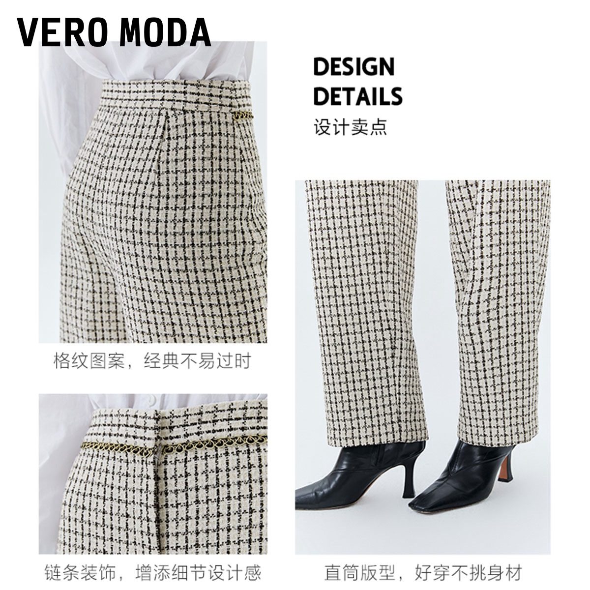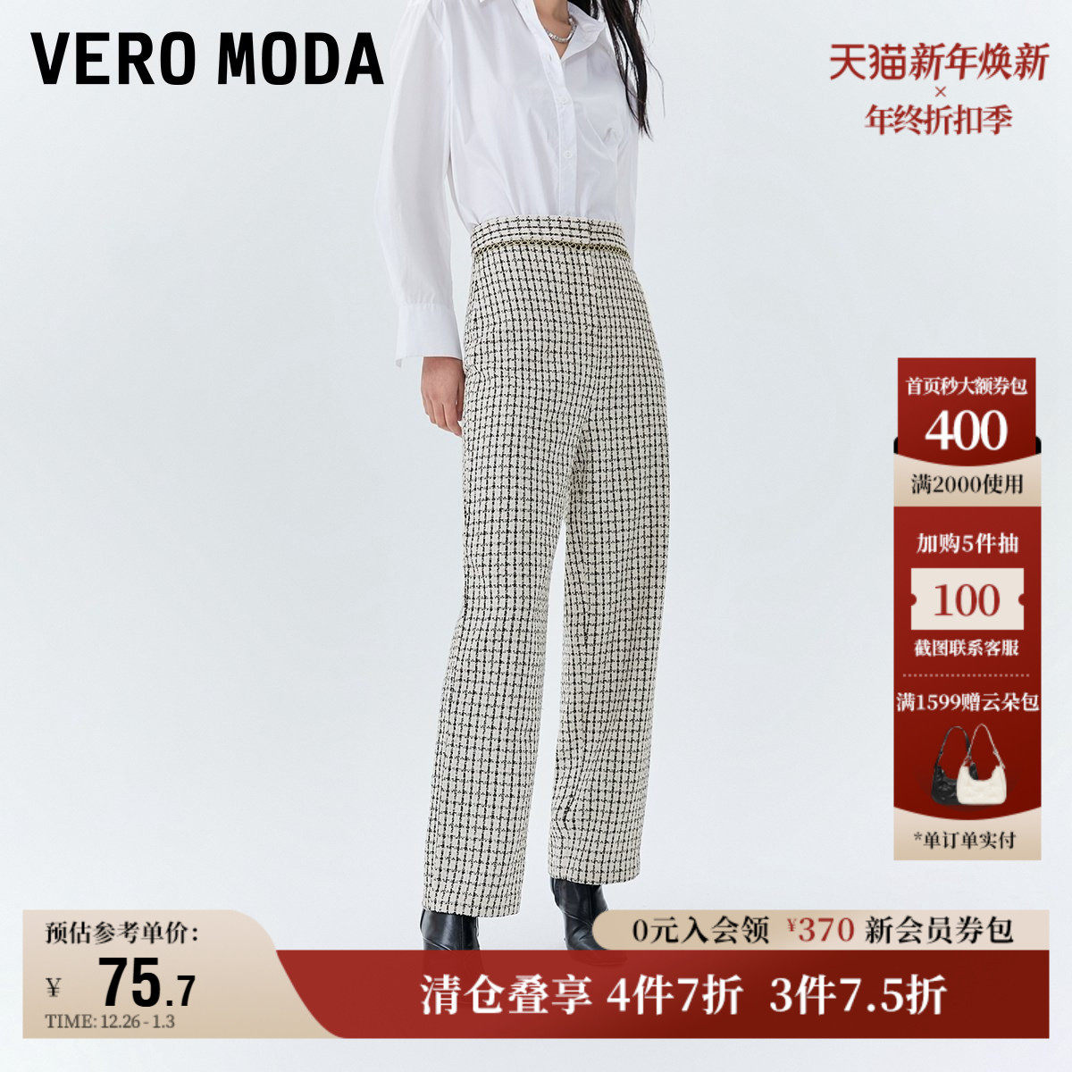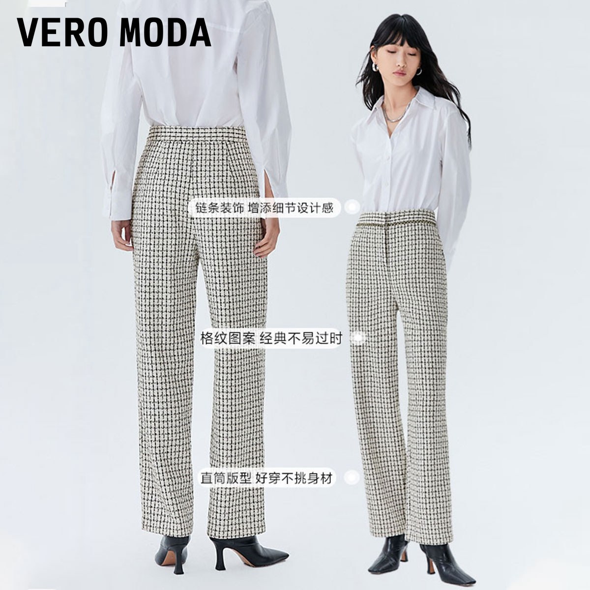 Vero Moda奥莱休闲裤女秋季清仓经典小香风千鸟格直筒百搭长裤