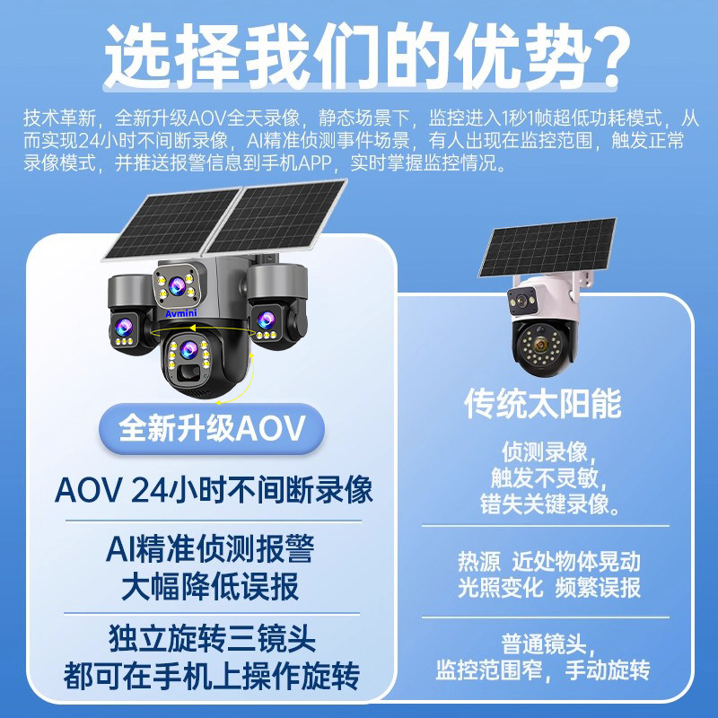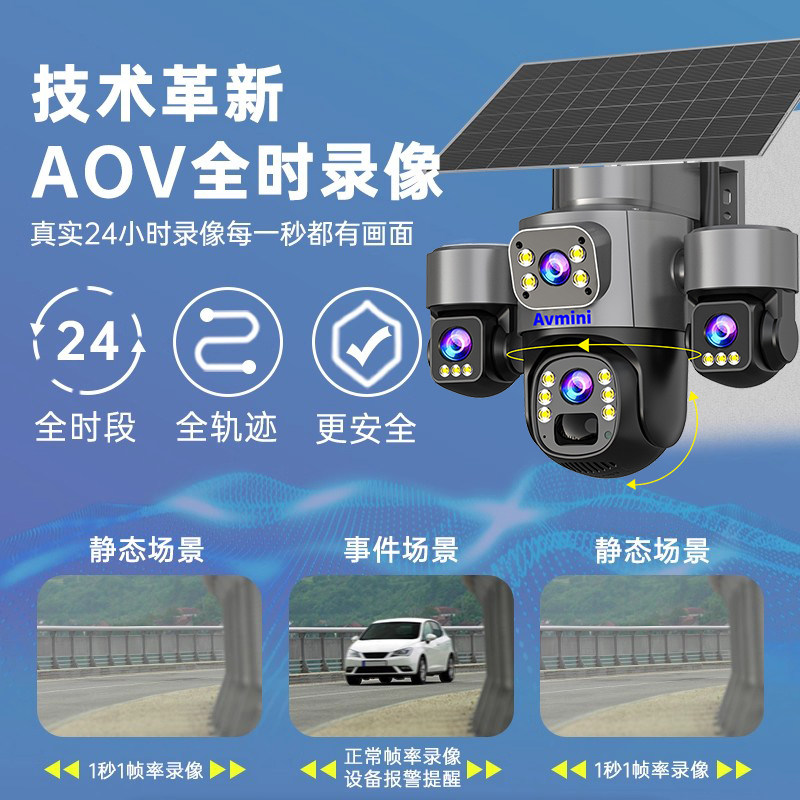 太阳能监控高清摄像头室外4G全彩AOV无电无网360度无死角手机远程