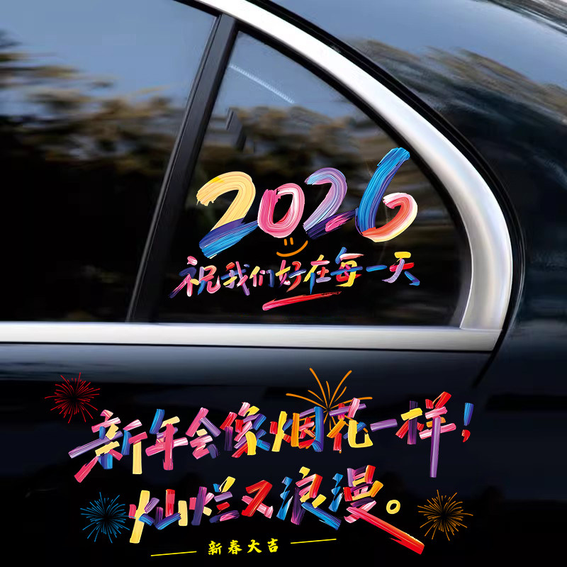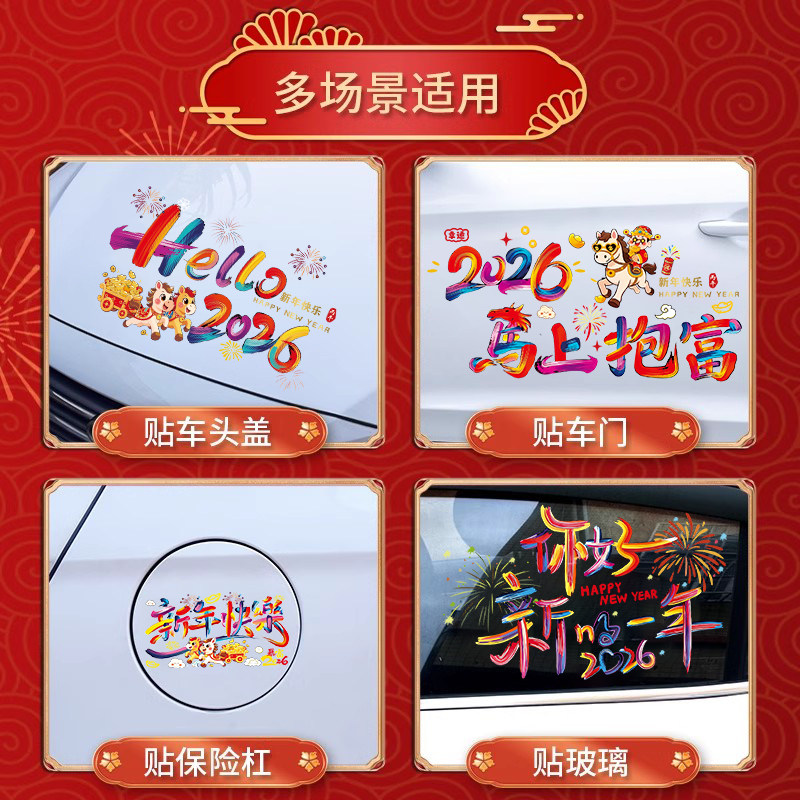 2026新年快乐车贴马上暴富大吉祝福春贴过年创意装饰贴电动车贴纸