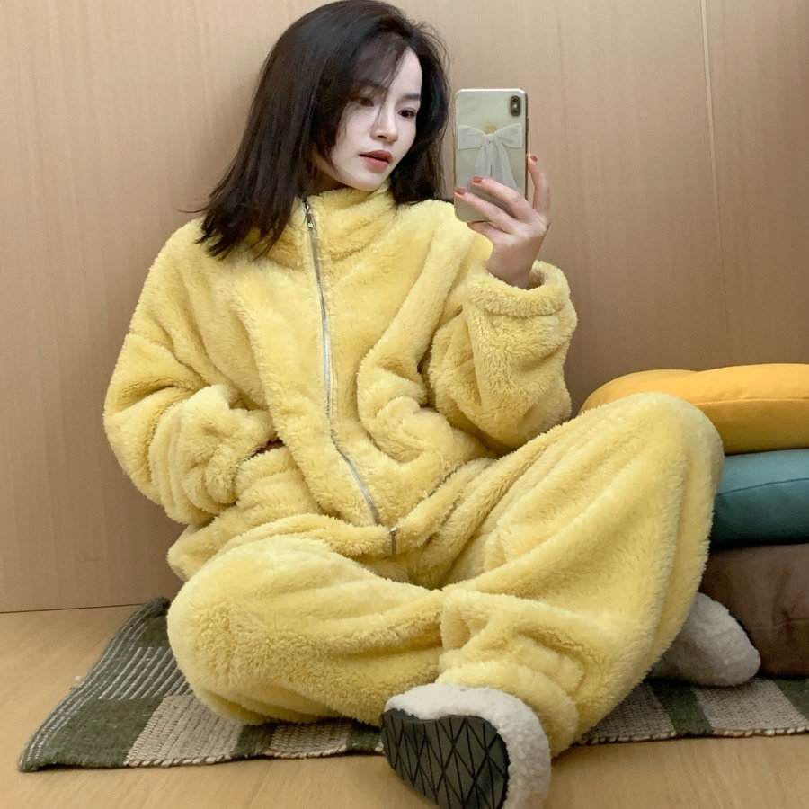 此外 加厚珊瑚绒家居服套装女2025冬季新款可外穿睡衣保暖两件套