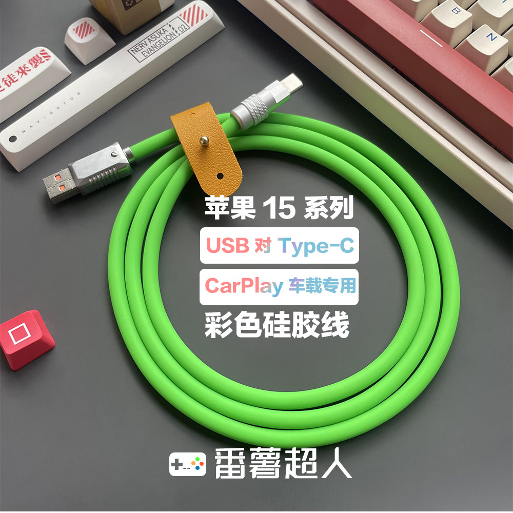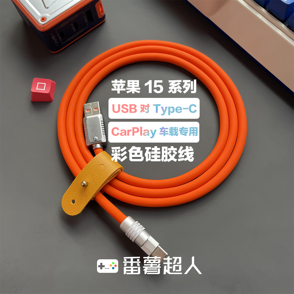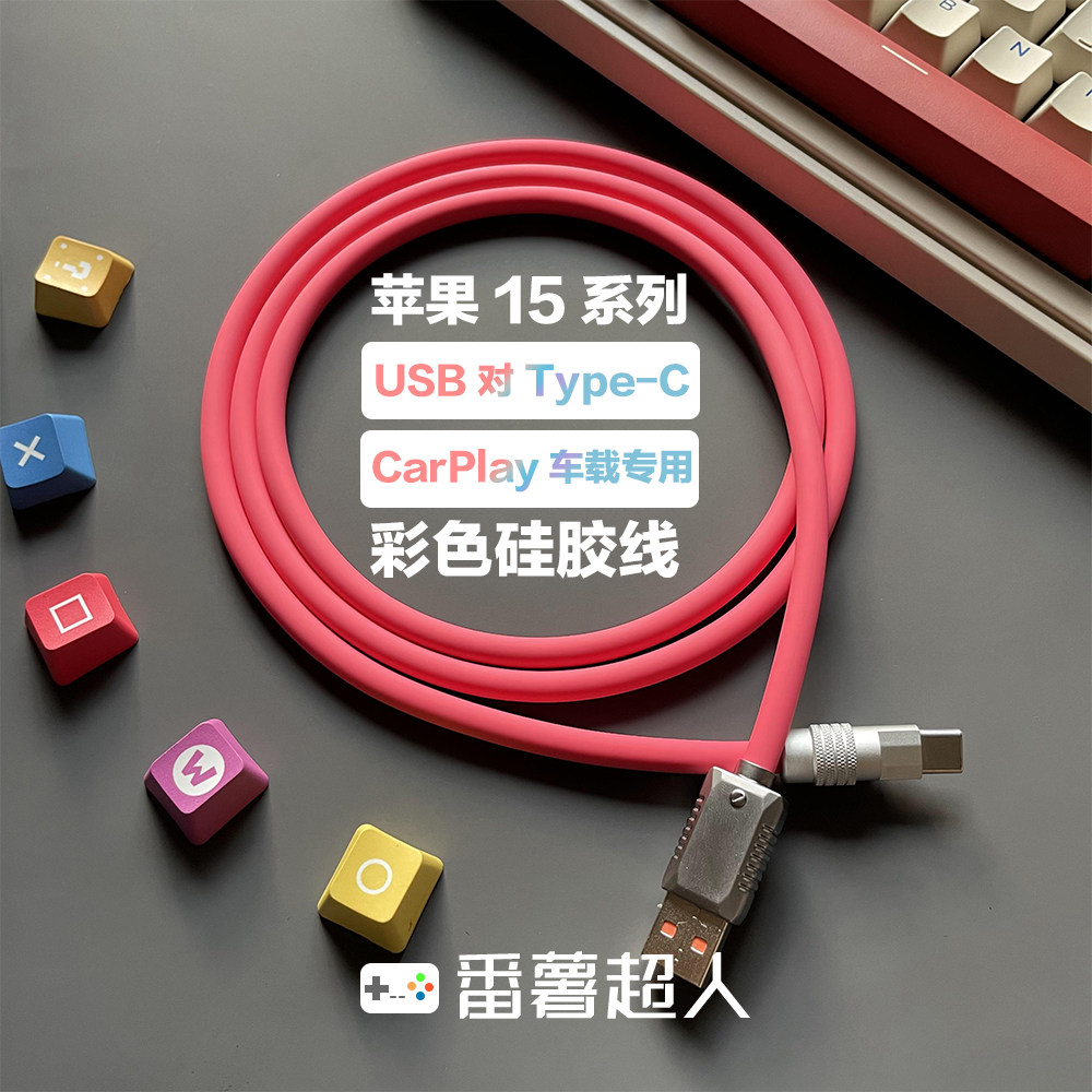 适用苹果iPhone16系列车载数据线USB对Type-c支持数据线传输CarPlay柔软硅胶diy客制化15promax手机车充电线
