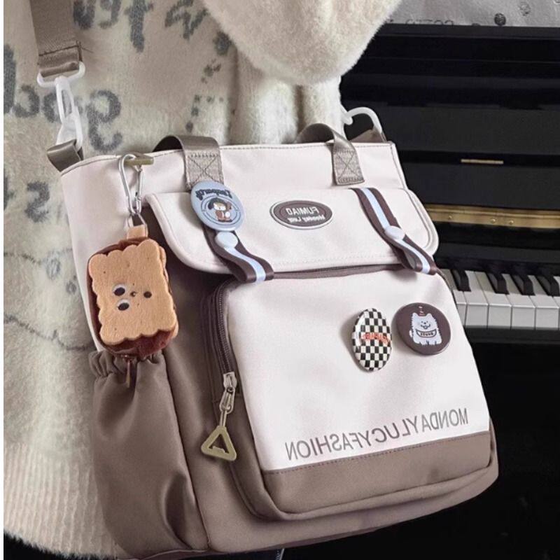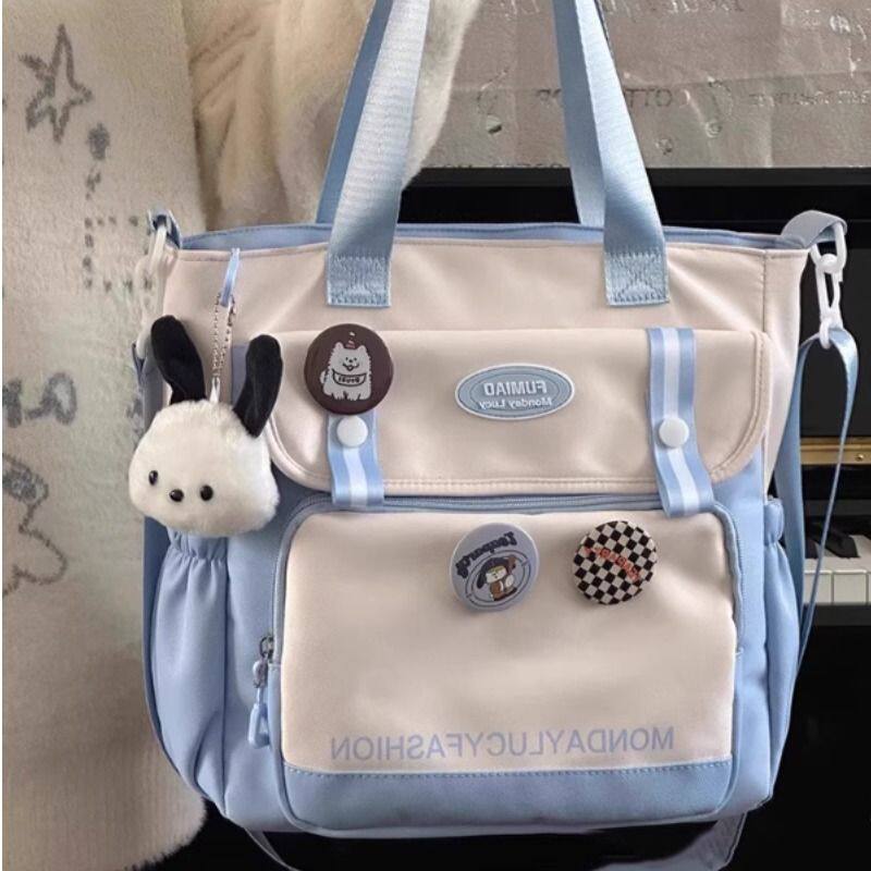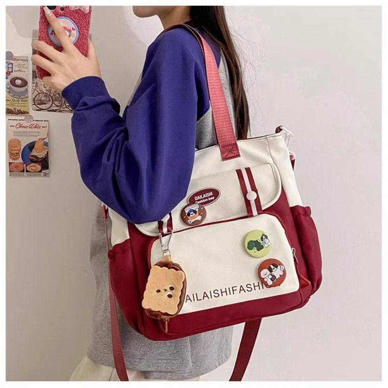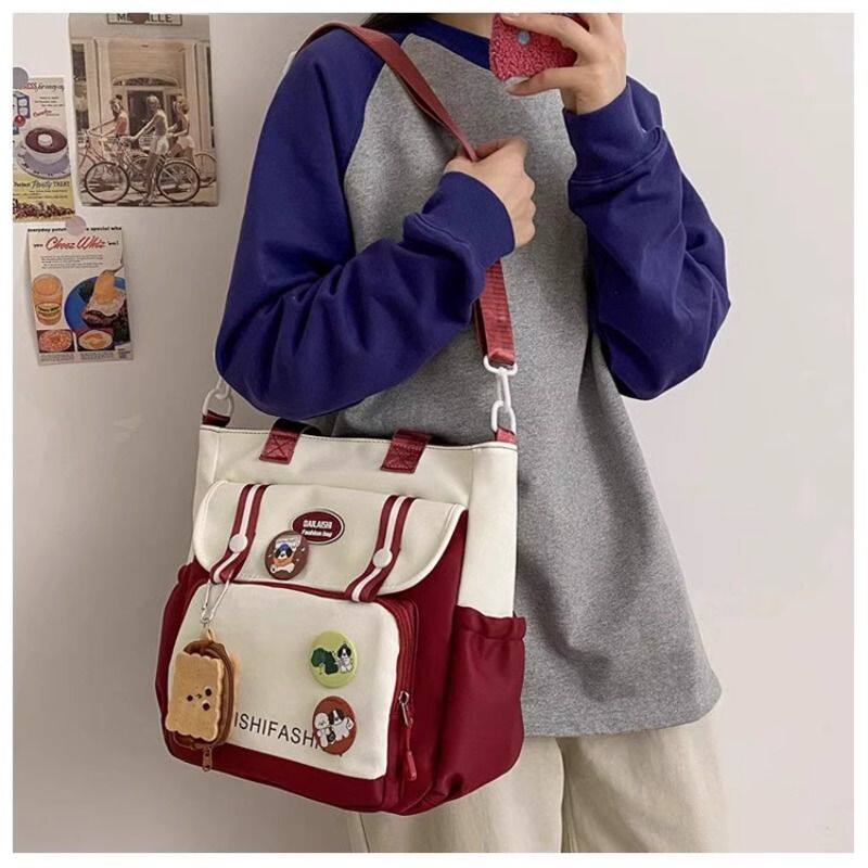 日系ins撞色学生党手提袋补习袋 帆布初中生大容量斜挎包上课包包