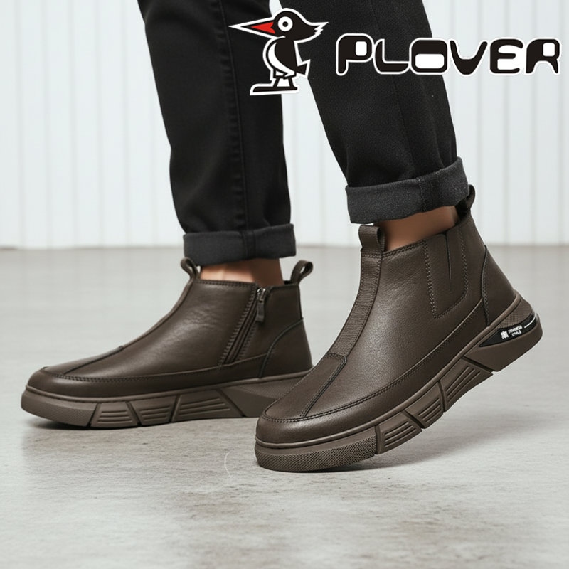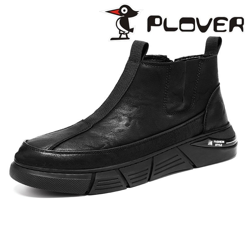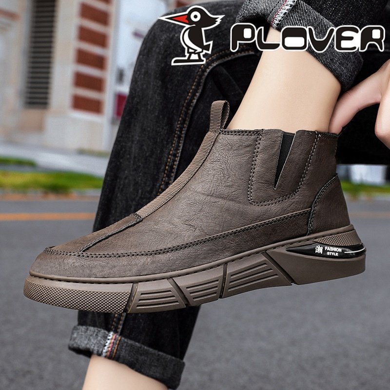 Plover马丁靴男秋季新款透气高帮皮鞋时尚工装潮酷机车靴休闲短靴