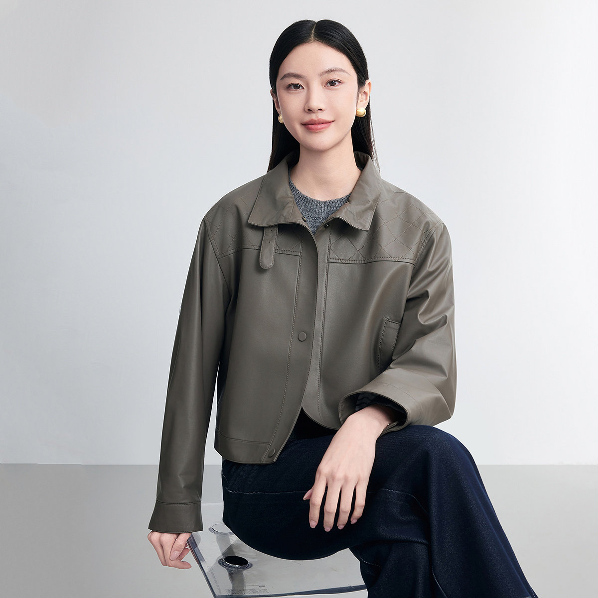 FINITY菲妮迪真皮皮衣2026春新款羊皮肌理感轻奢质感短款外套女装
