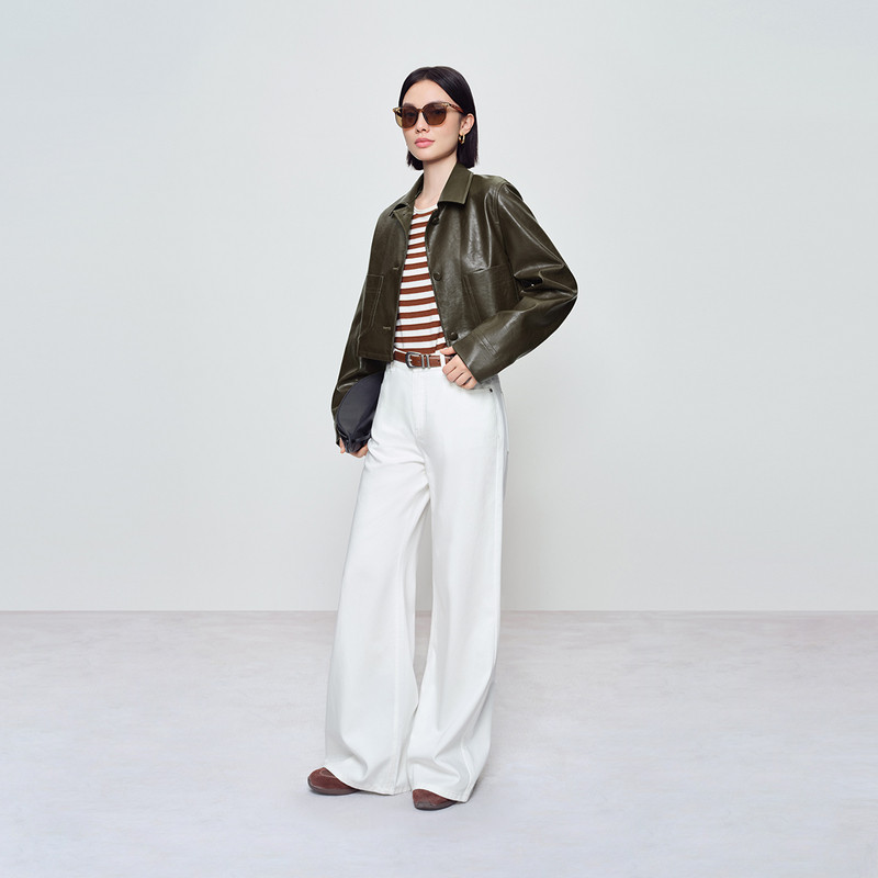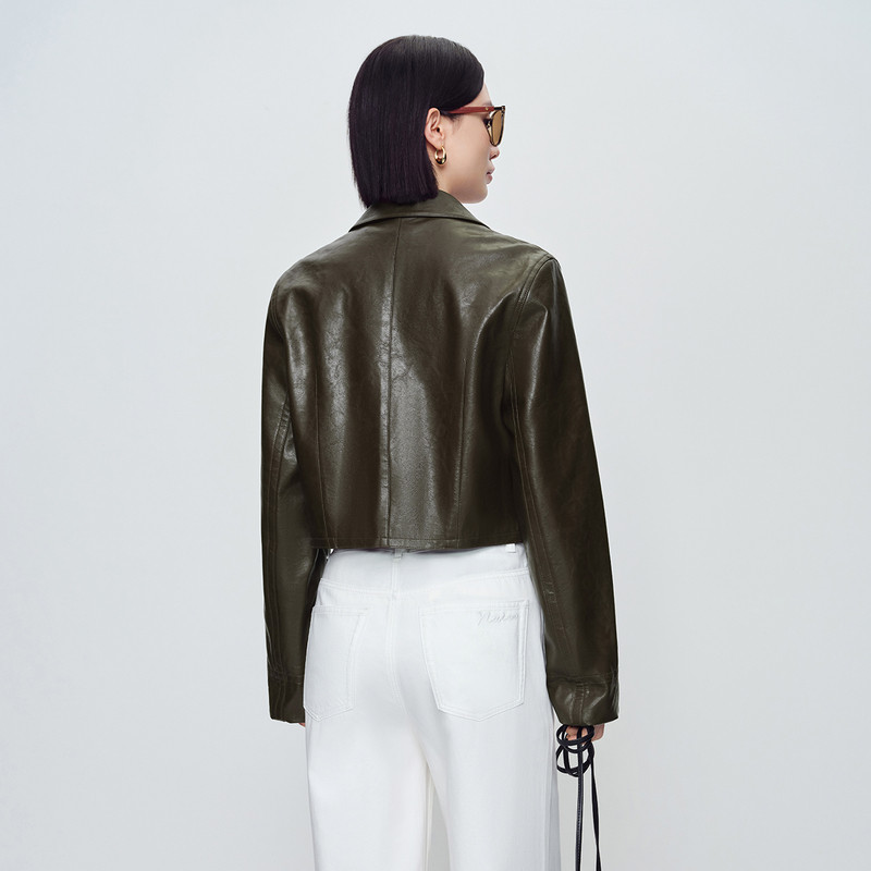【伽罗绿】naivee纳薇26春新款复古PU短夹克立体箱型皮衣外套