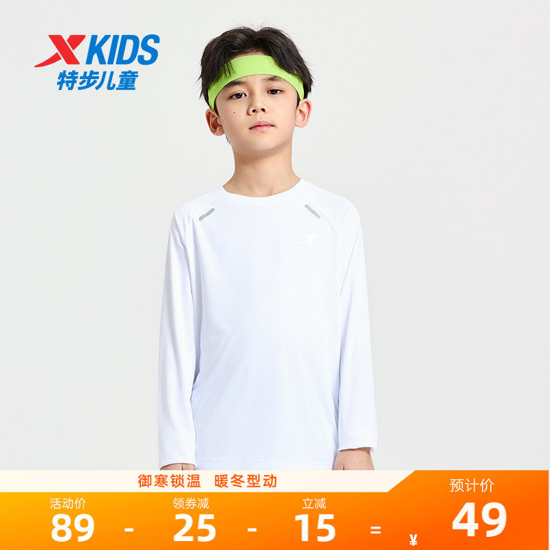 盾甲|特步童装男童速干长袖T恤2025秋冬新款儿童上衣服中大童秋装