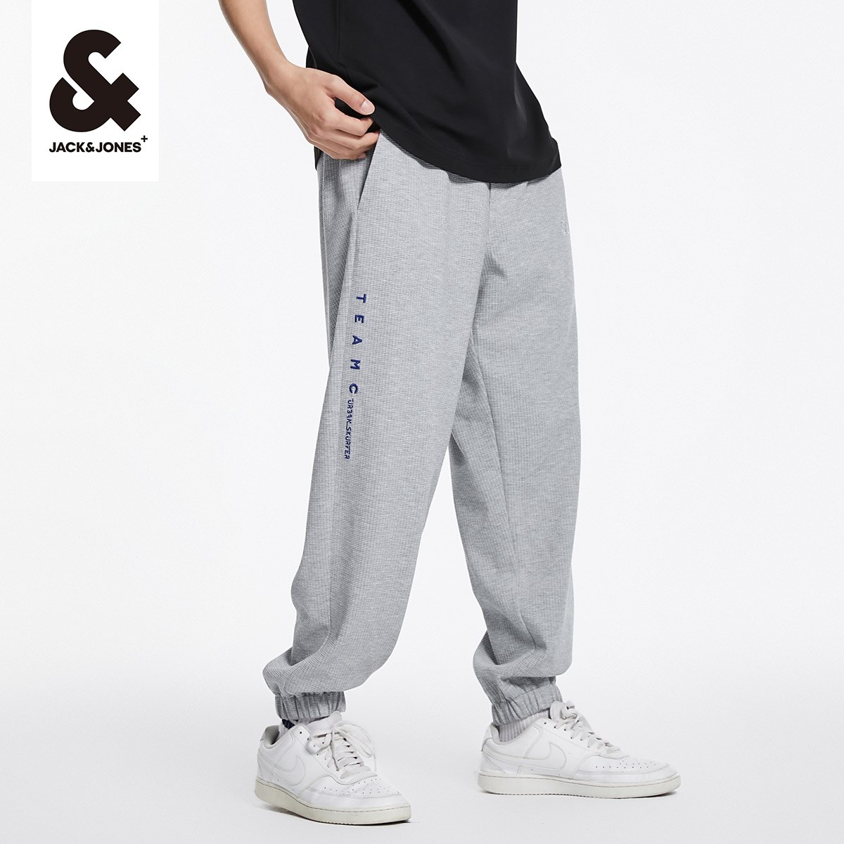 杰克琼斯outlets春季休闲裤子华夫格撞色刺绣锥形束脚裤子男装