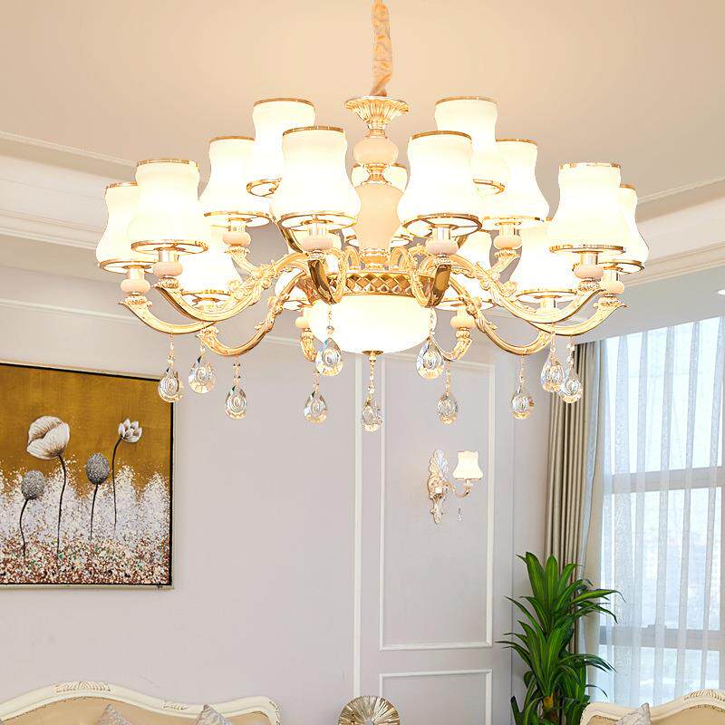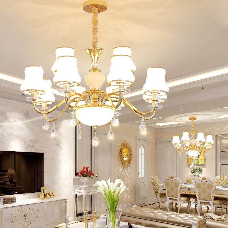 欧式吊灯客厅奢华大气金色水晶吊灯8头卧室led餐厅饭桌灯具简欧