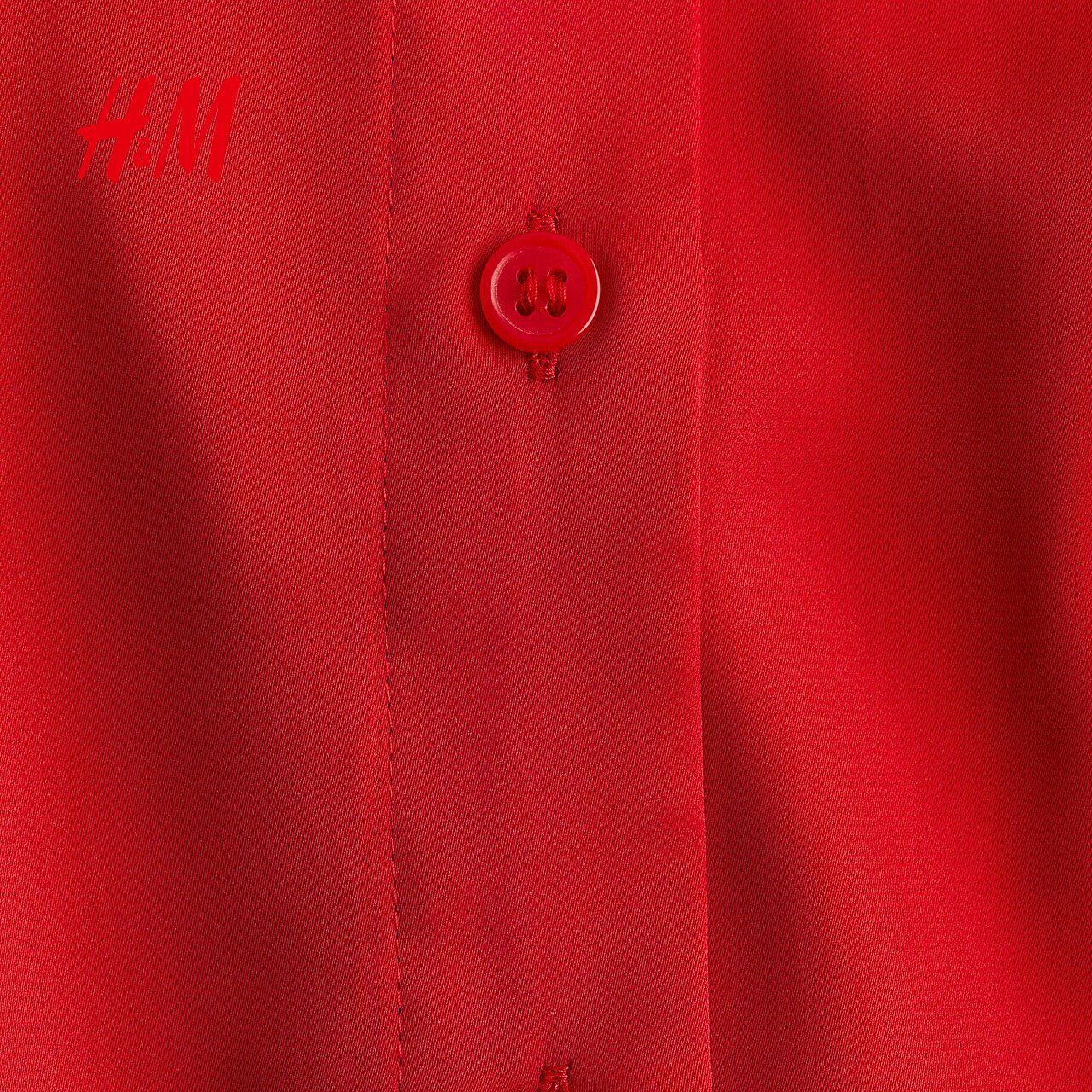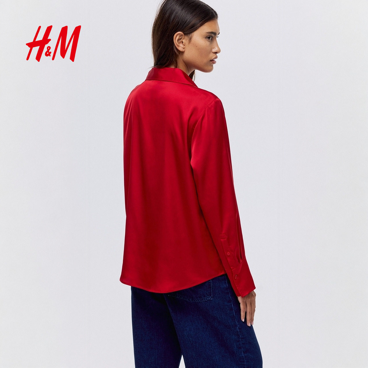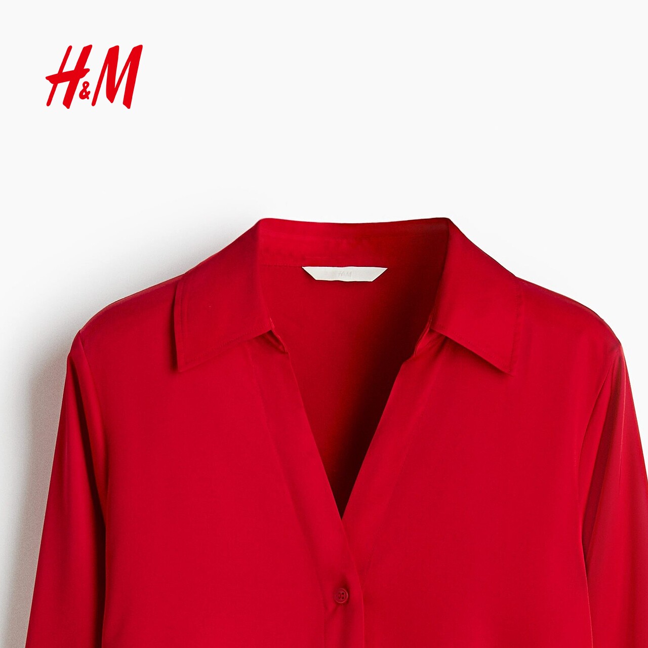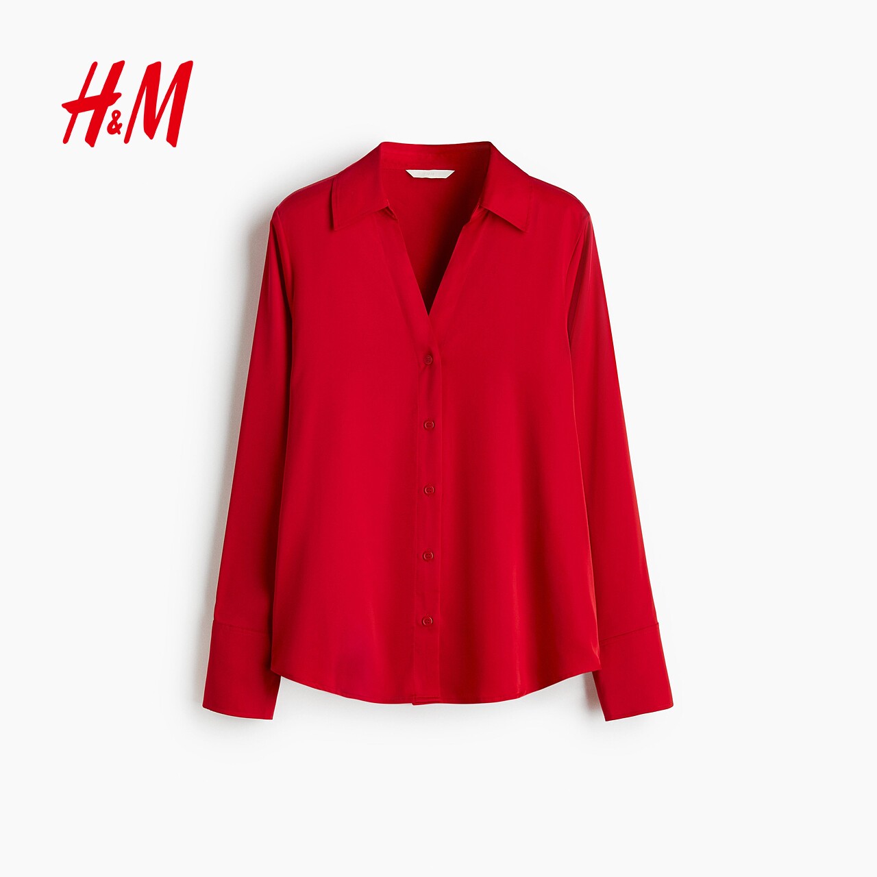 HM女装衬衫2026春季新款时尚V领上衣潮流款流光缎面衬衫0939703