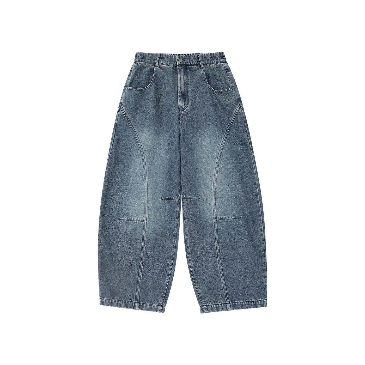 艾恩晟 2025早春美式宽松垂感牛仔阔腿裤深蓝色系慵懒风ins博主风