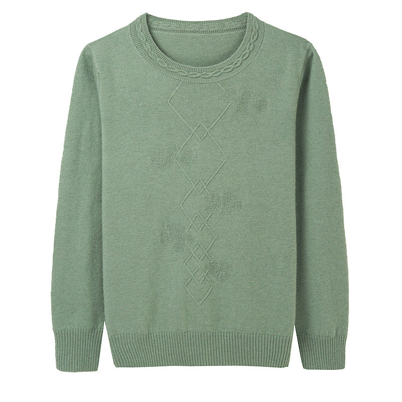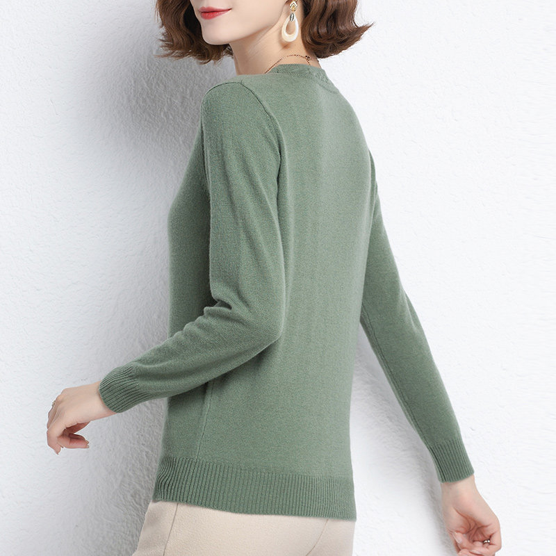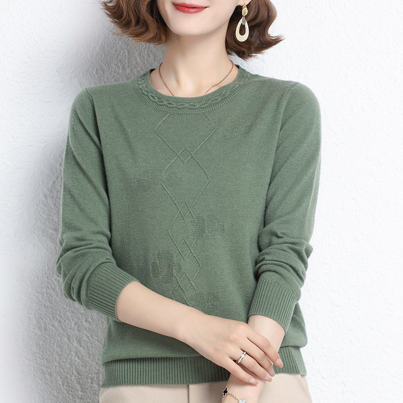 恒源祥100%羊毛衫秋冬女装毛衣纯色套头宽松针织打底衫圆领上衣