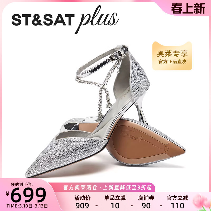 星期六时装凉鞋女2026春季款一字式扣带性感闪钻高跟鞋SSE1114143