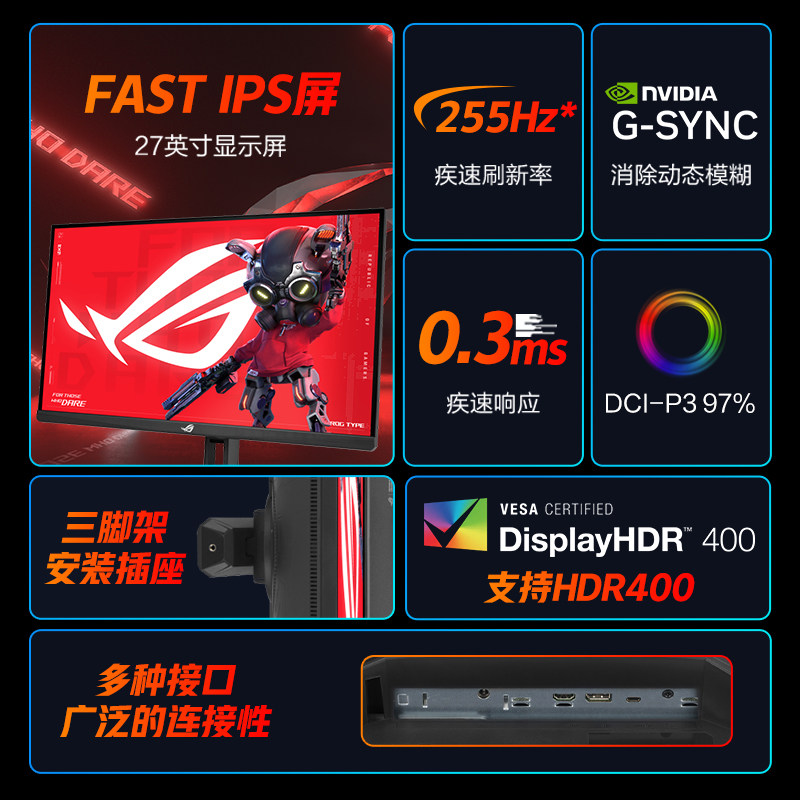 Asus/华硕ROG绝杀27二代 2K显示器27英寸255HZ电竞游戏IPS显示屏
