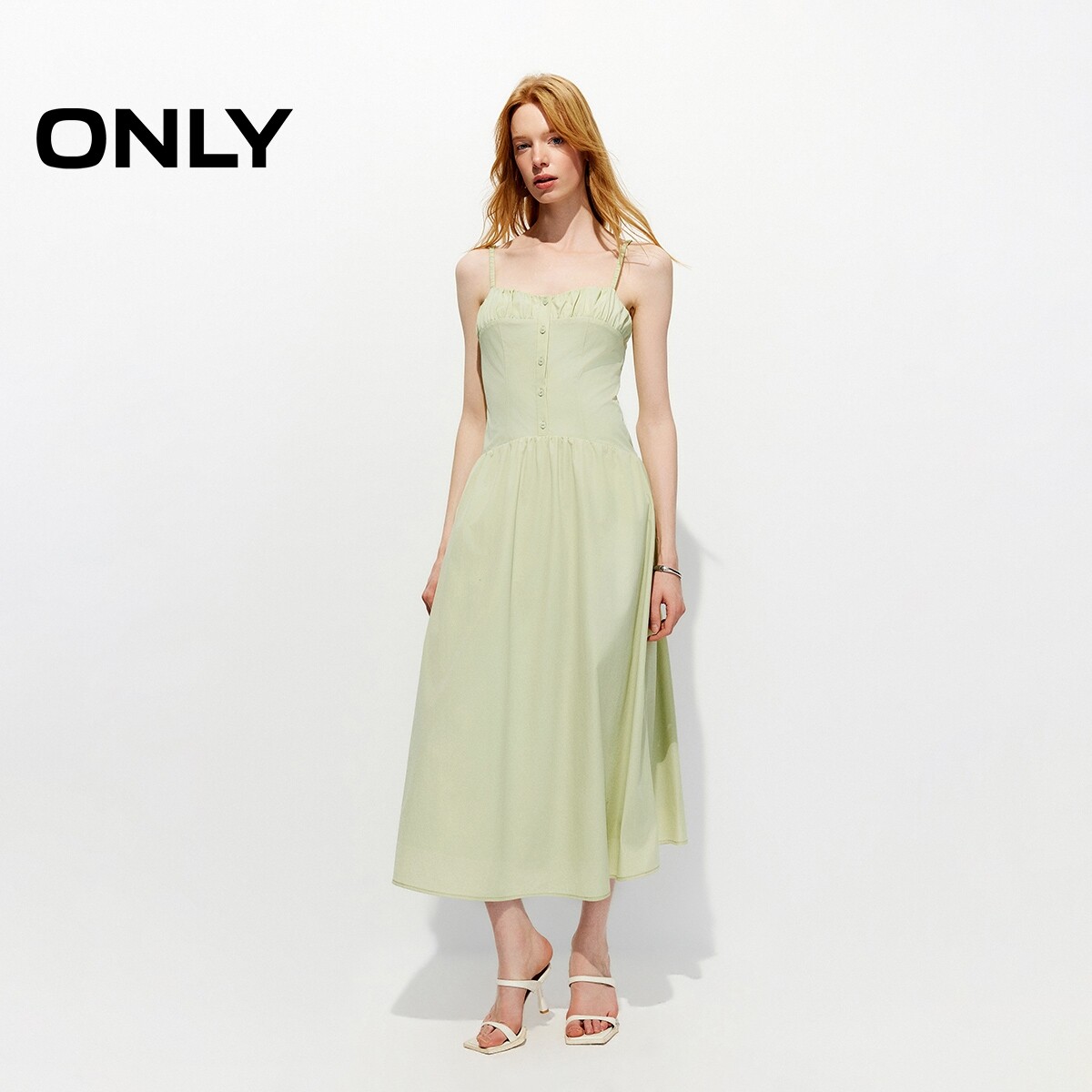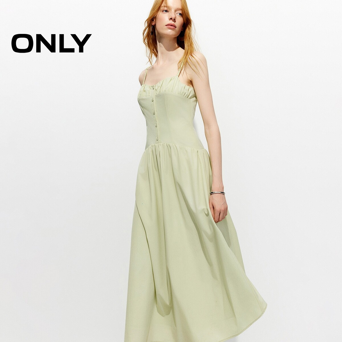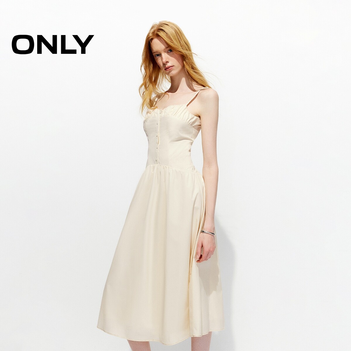 ONLY2026春季新款可调节弹力肩带领口捏褶法式裙子压褶吊带连衣裙