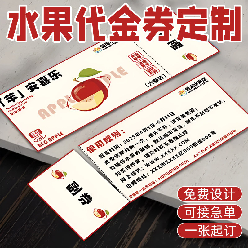 水果代金券设计樱桃榴莲开业广告宣传多联优惠券定制生鲜超市节日活动果蔬现金券抵用券印刷蔬菜店满减券制作