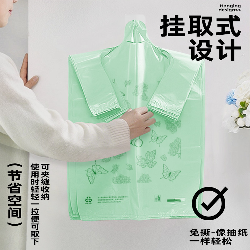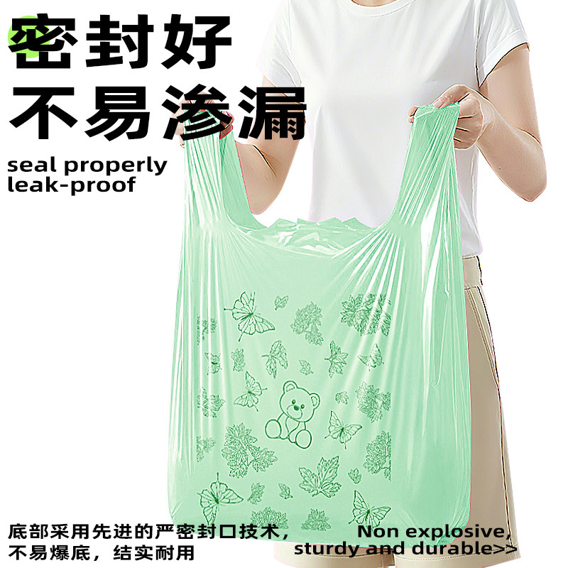 艾草香味宠物拾便袋加厚手提家用厨房垃圾袋背心式印花免撕清洁袋