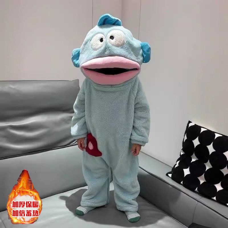 新款丑鱼儿童可爱搞怪连体睡衣男女亲子秋冬加厚珊瑚绒卡通家居服