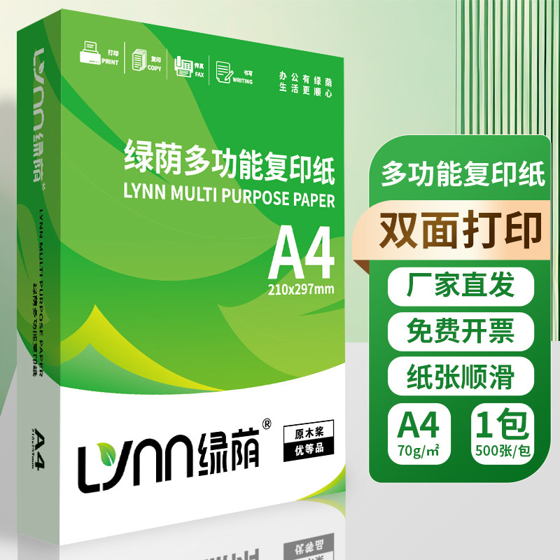 a4绿荫打印纸【五箱装】企业采购5大箱装批发 白纸 70g80g 采购装5箱25包复印纸a4办公用纸草稿纸开票