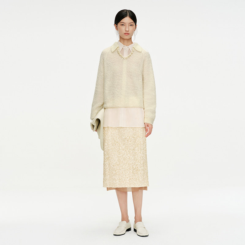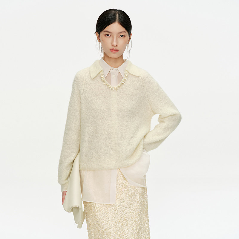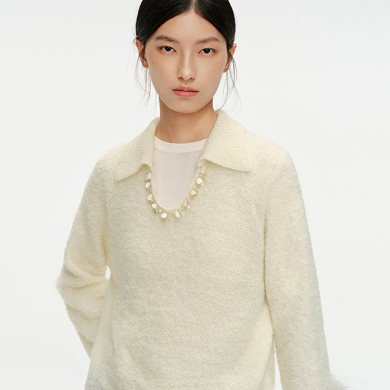 MESUX米岫25冬Baby马海毛X绵羊毛混纺POLO领重工链饰毛衣MNWUE419
