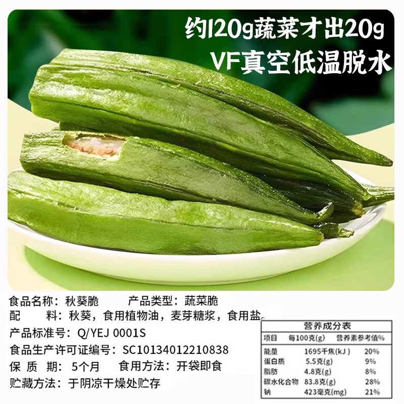 比比赞秋葵脆即食果蔬脆蔬菜干新鲜黄秋葵水果干小零食小吃休闲BY