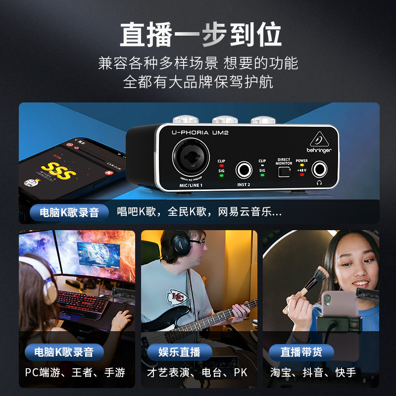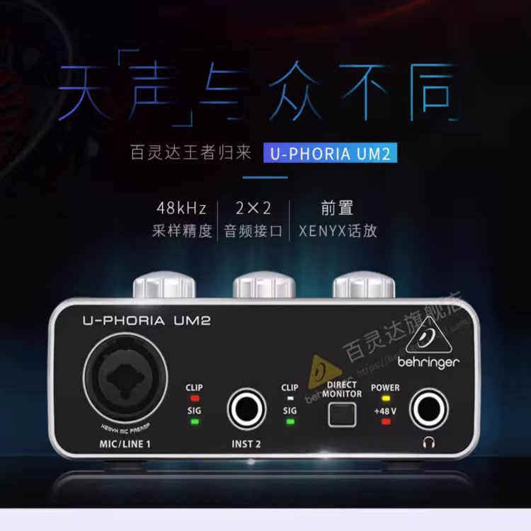BEHRINGER 百灵达 UM2 USB外置声卡专业录音电脑主播唱歌直播专用