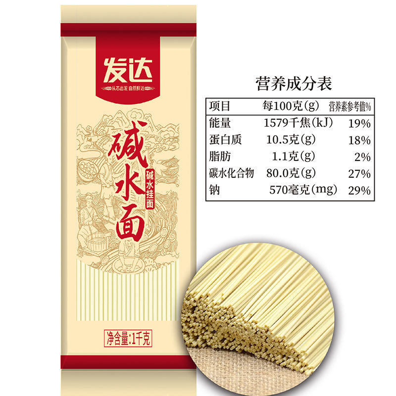 山东发达碱水面挂面1000g爽滑炒面速食拌面凉面圆家用热干面面条