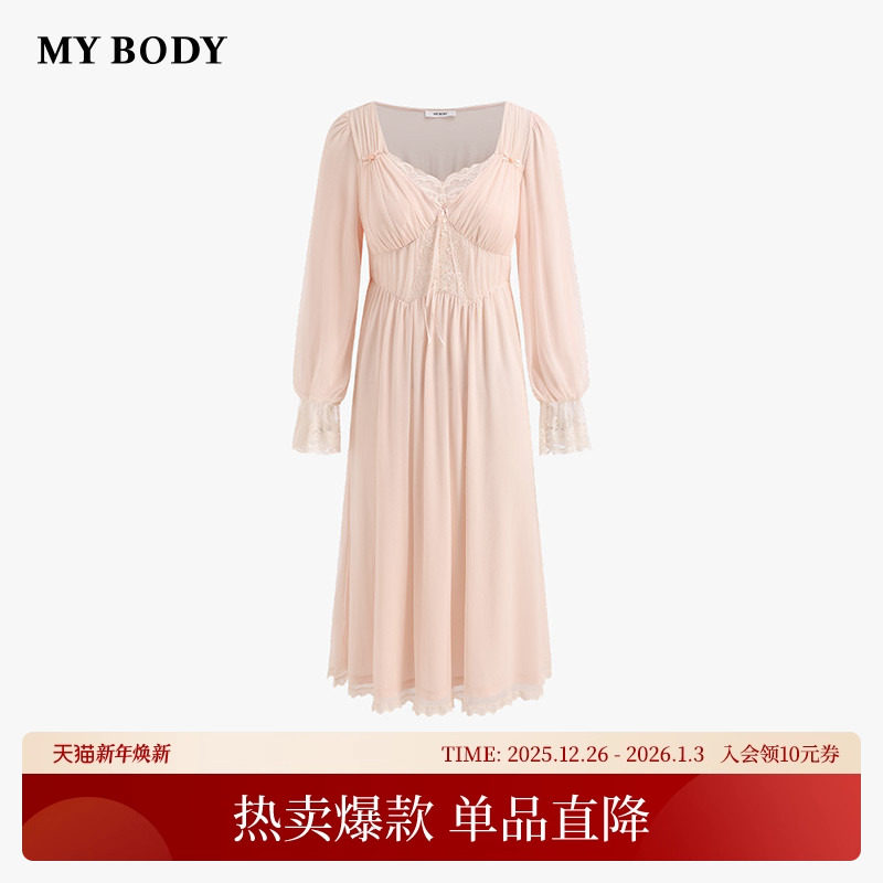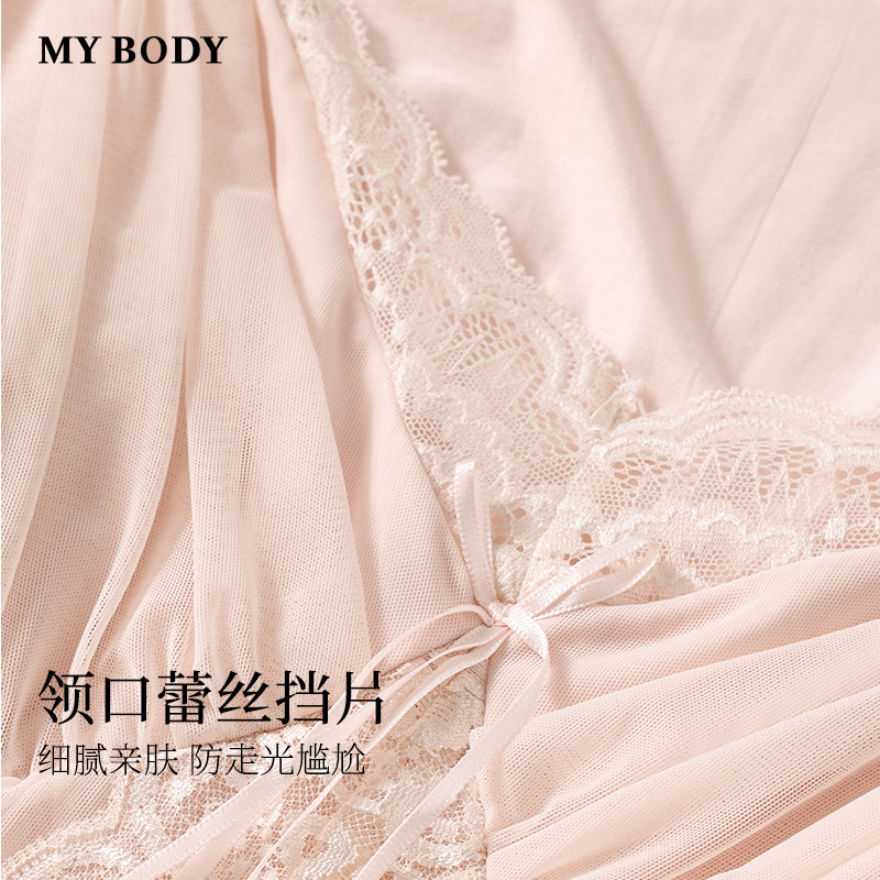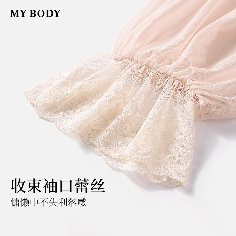 商场同款MYBODY新款慵懒V领玫瑰花园甜美梦幻纱裙袖口蕾丝睡裙女