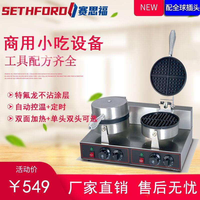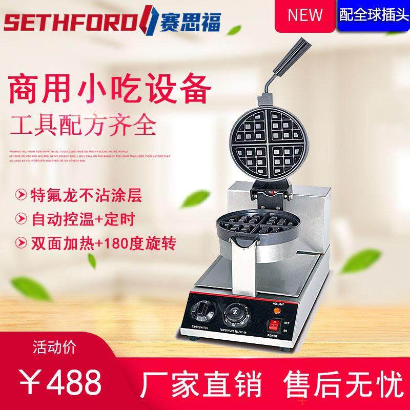 电子版旋转华夫炉电热格子饼可丽饼加热炉带计时双面华夫饼松饼机
