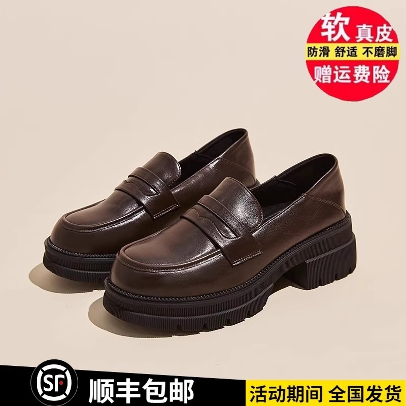 真皮乐福鞋女鞋子2025春秋新款爆款厚底英伦风小皮鞋女黑休闲单鞋