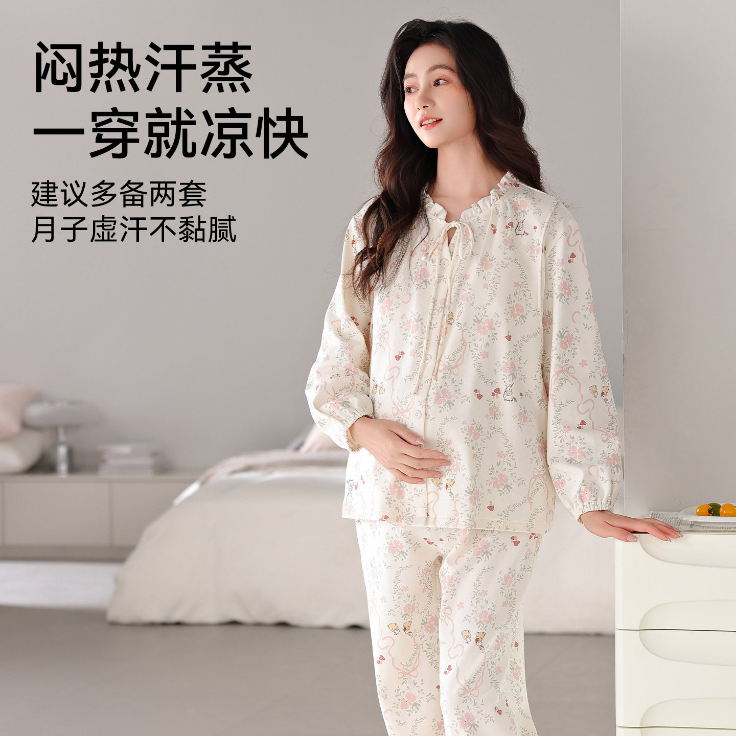 月子服十月份孕妇睡衣纯棉全棉吸汗怀孕期套装产妇喂奶哺乳家居服