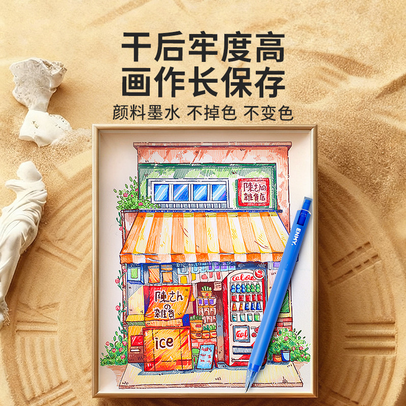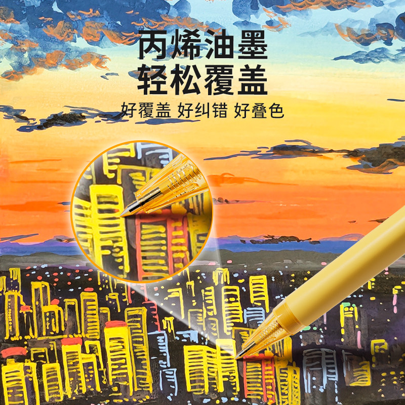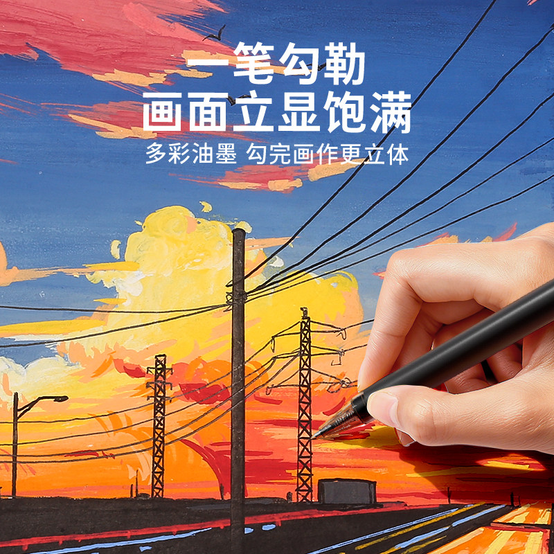 恩米彩虹丙烯勾线笔水彩美术按动绘画笔专业极细专用红色彩绘线条