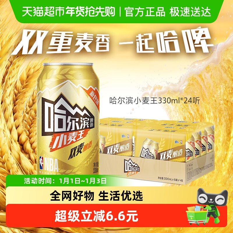 哈尔滨啤酒小麦王330ml*24听 哈啤整箱批发10度清醇爽口易拉罐