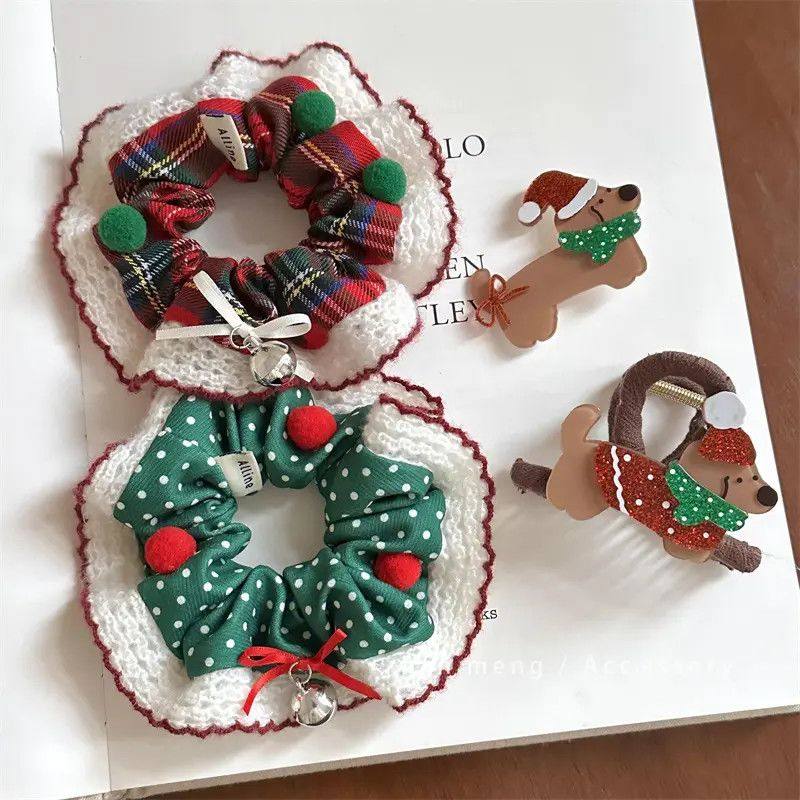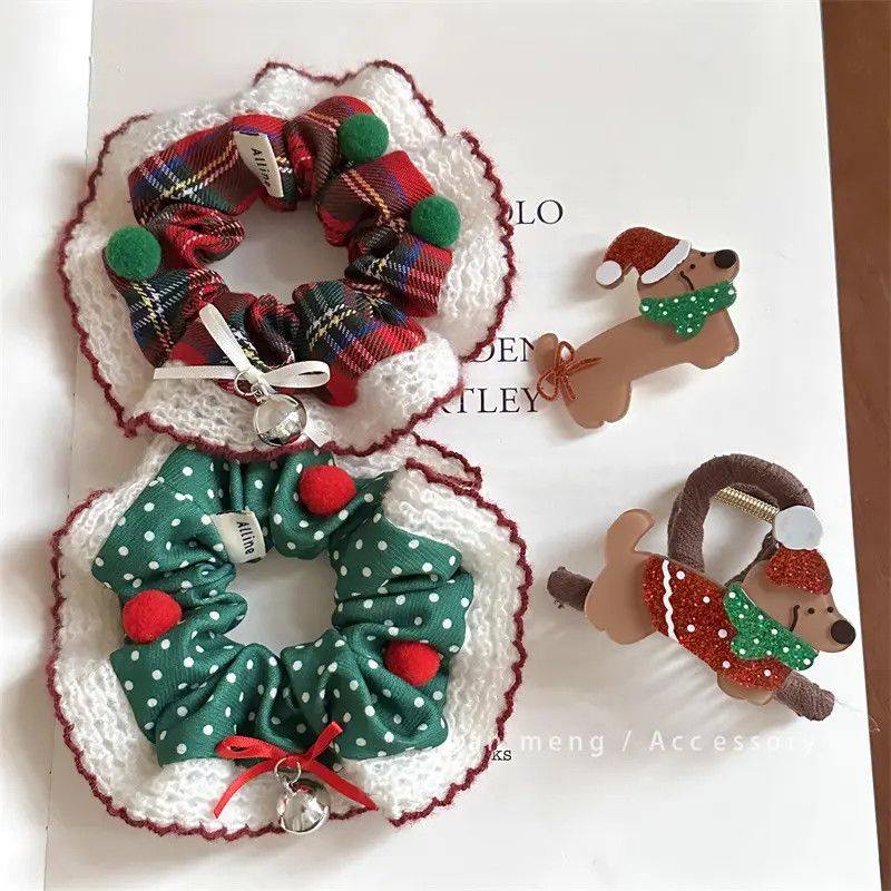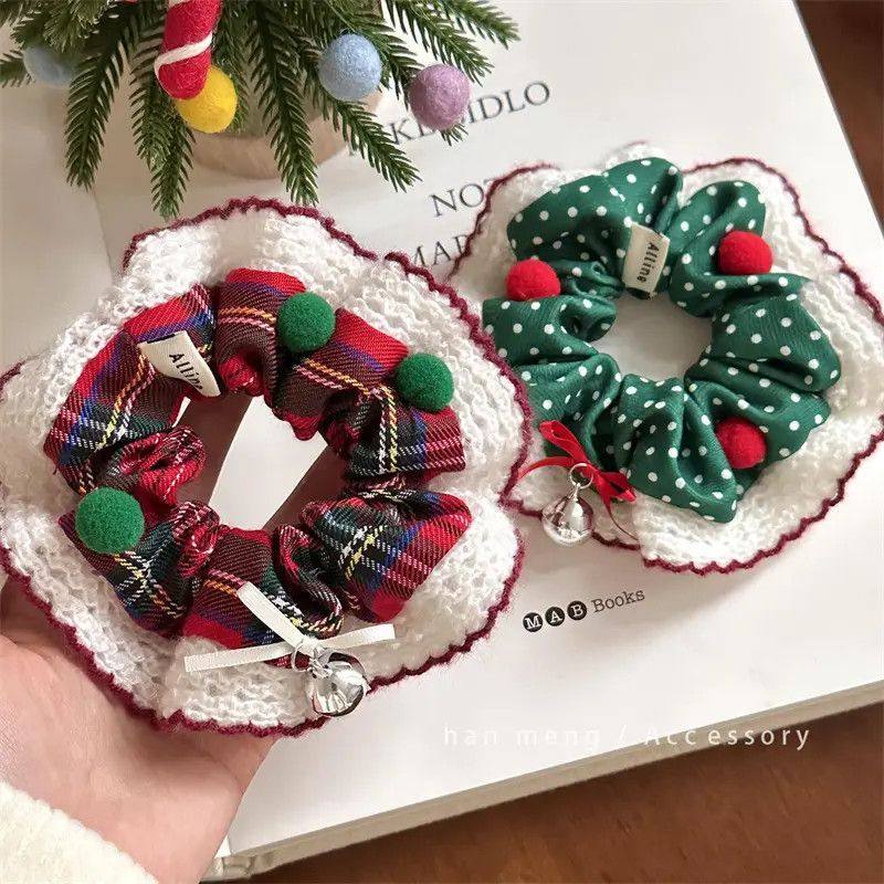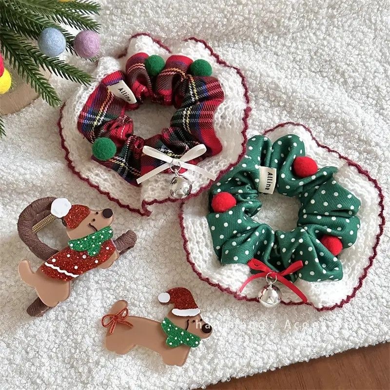 2025新款圣诞发圈红格子发箍鸭夹格子大肠圈韩系发饰女波点蝴蝶结