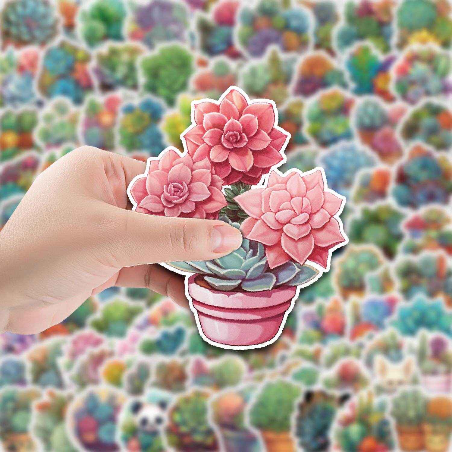100张植物多肉涂鸦贴纸行李箱吉它手机装饰贴画防水教学文具贴纸