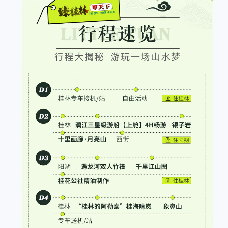 8人小团桂林旅游4天3晚跟团游漓江阳朔竹筏遇龙河纯玩三星船四日