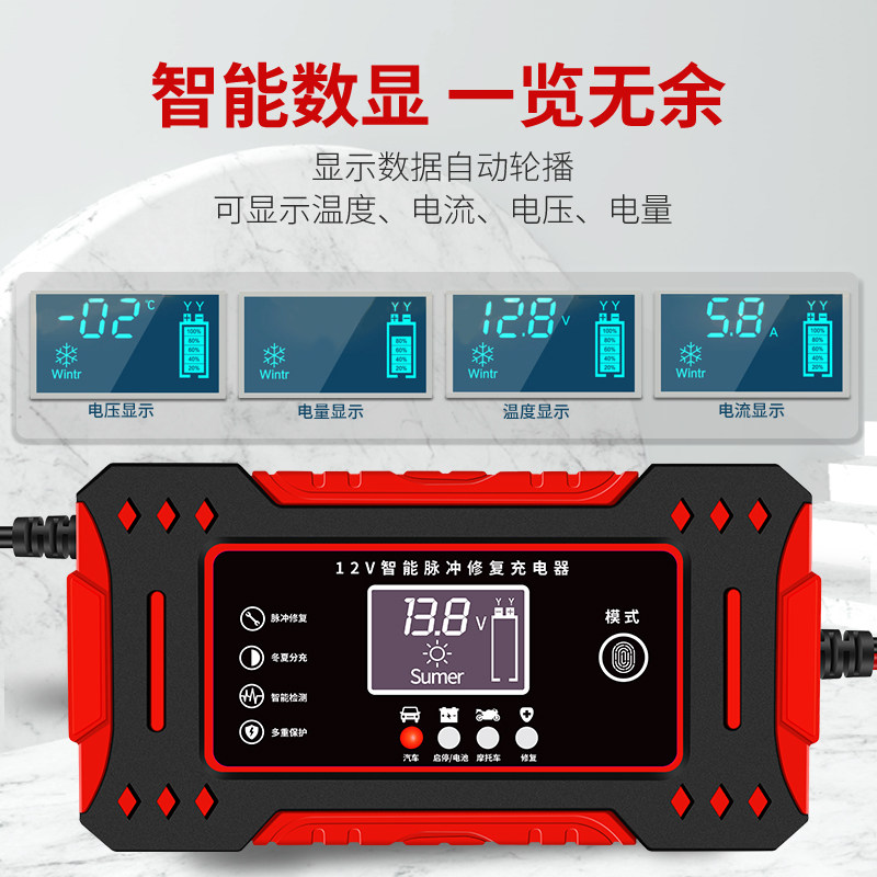 12V24V充电器汽车电瓶摩托车铅酸蓄电池自动修复充电机智能通用型
