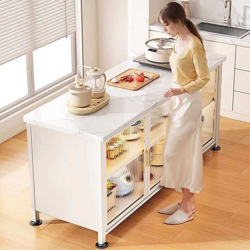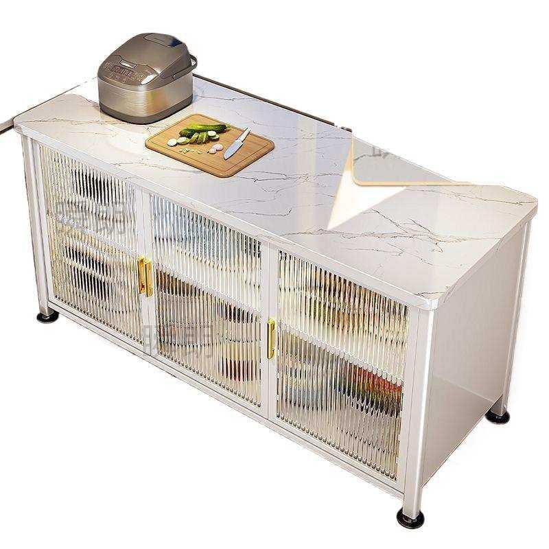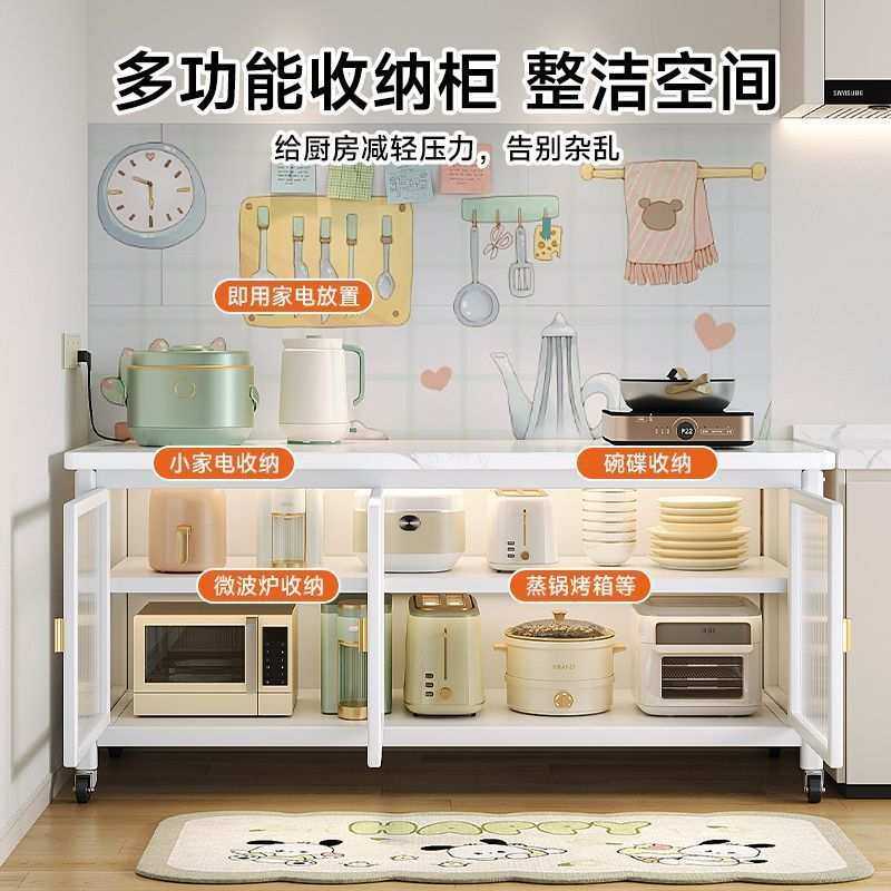 瞬朗对开门岩板厨房置物架落地多层收纳柜微波炉烤箱切菜餐边柜