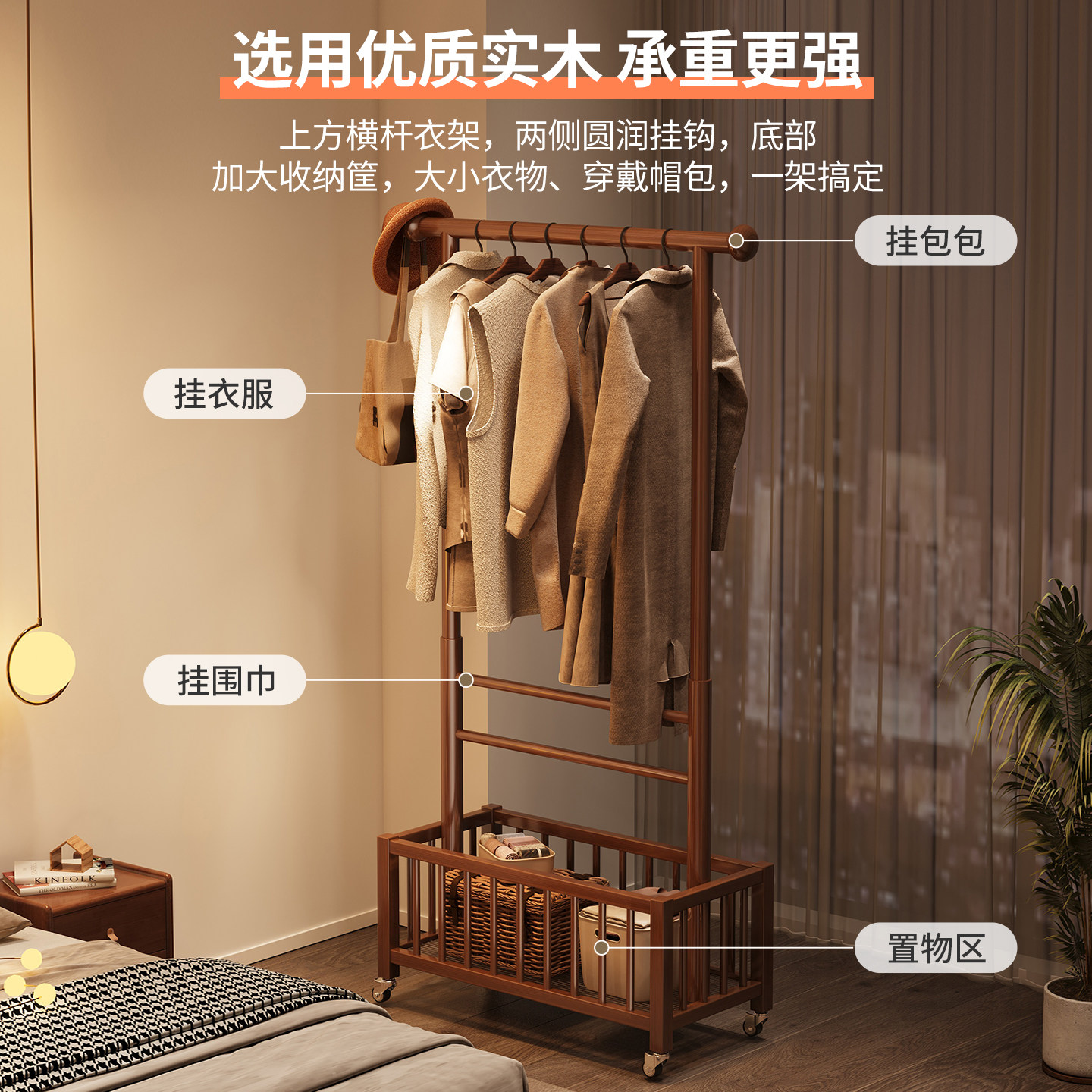 实木衣架落地挂衣架卧室衣帽架衣服架晾衣架床头固定客厅放衣收纳