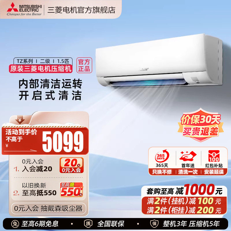 三菱电机空调MSZ-TZ12VA1.5匹变频家用卧室冷暖挂机官方