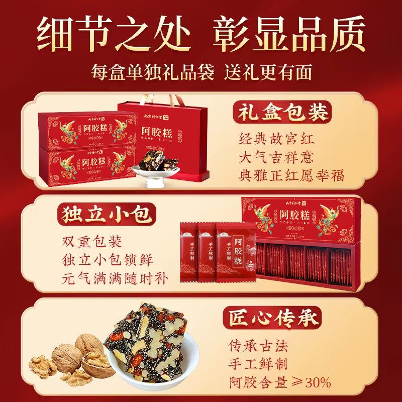 阿胶糕纯手工女性即食正宗山东东阿核桃黑芝麻糕正品礼盒送礼长辈