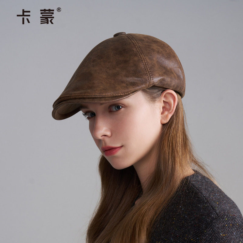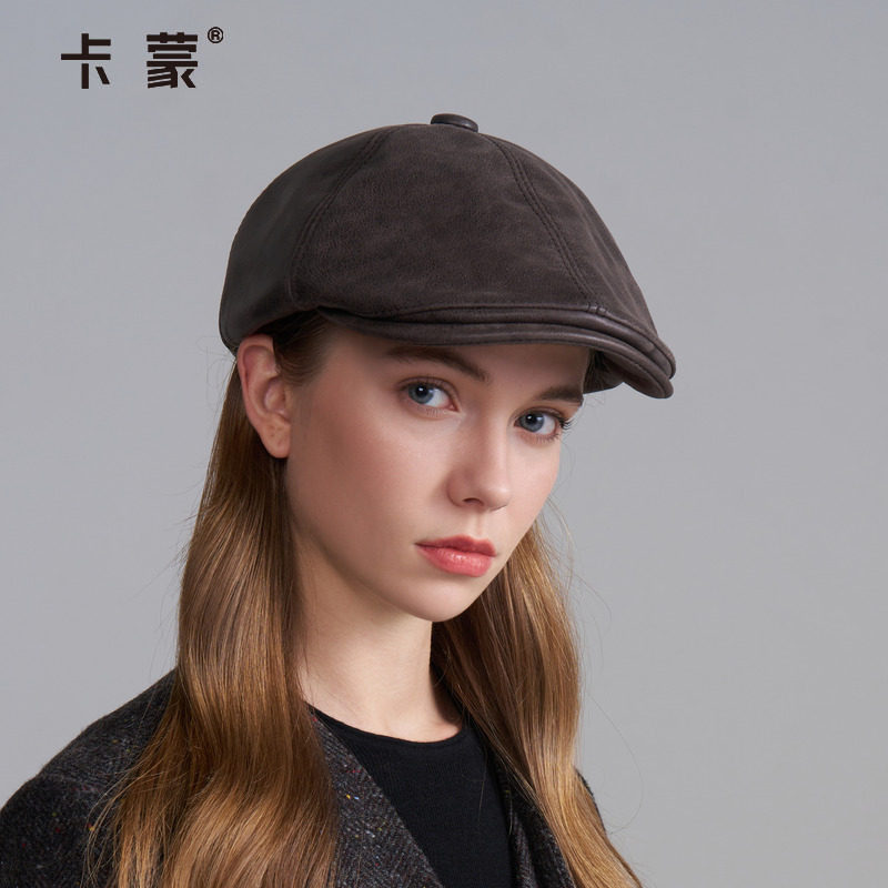 卡蒙新款帽子真皮贝雷帽女冬时尚复古防寒保暖前进帽鸭舌帽旗舰店