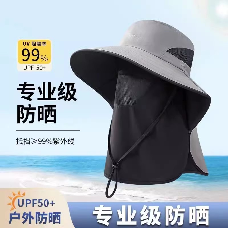 帽子夏季钓鱼帽防紫外线渔夫帽女遮阳户外太阳帽凉帽面罩防晒全脸