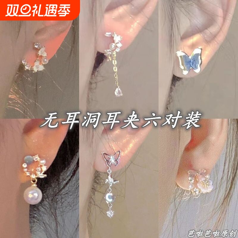 蝴蝶珍珠套装耳钉女轻奢小众高级感耳骨钉耳饰品2025新款爆款耳环