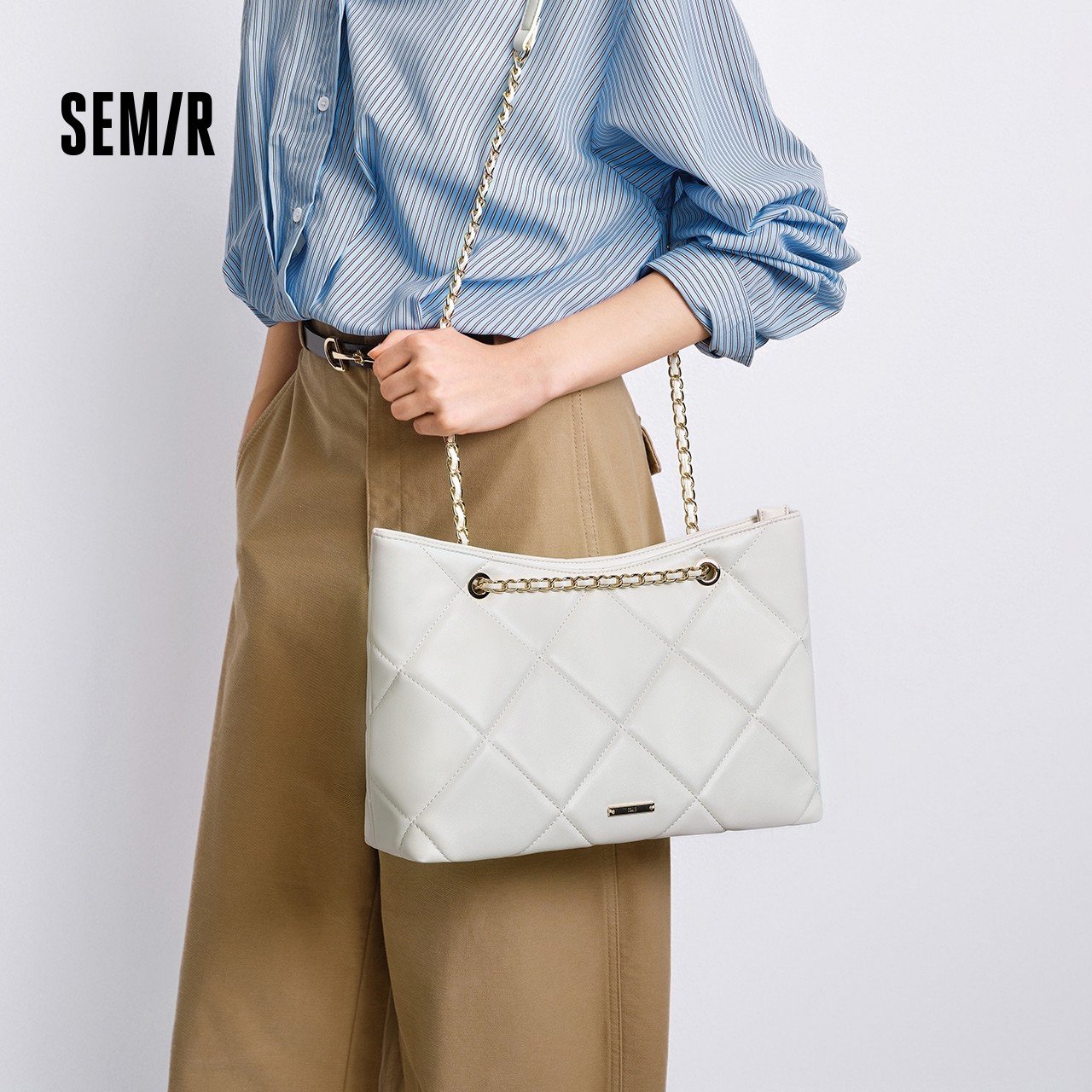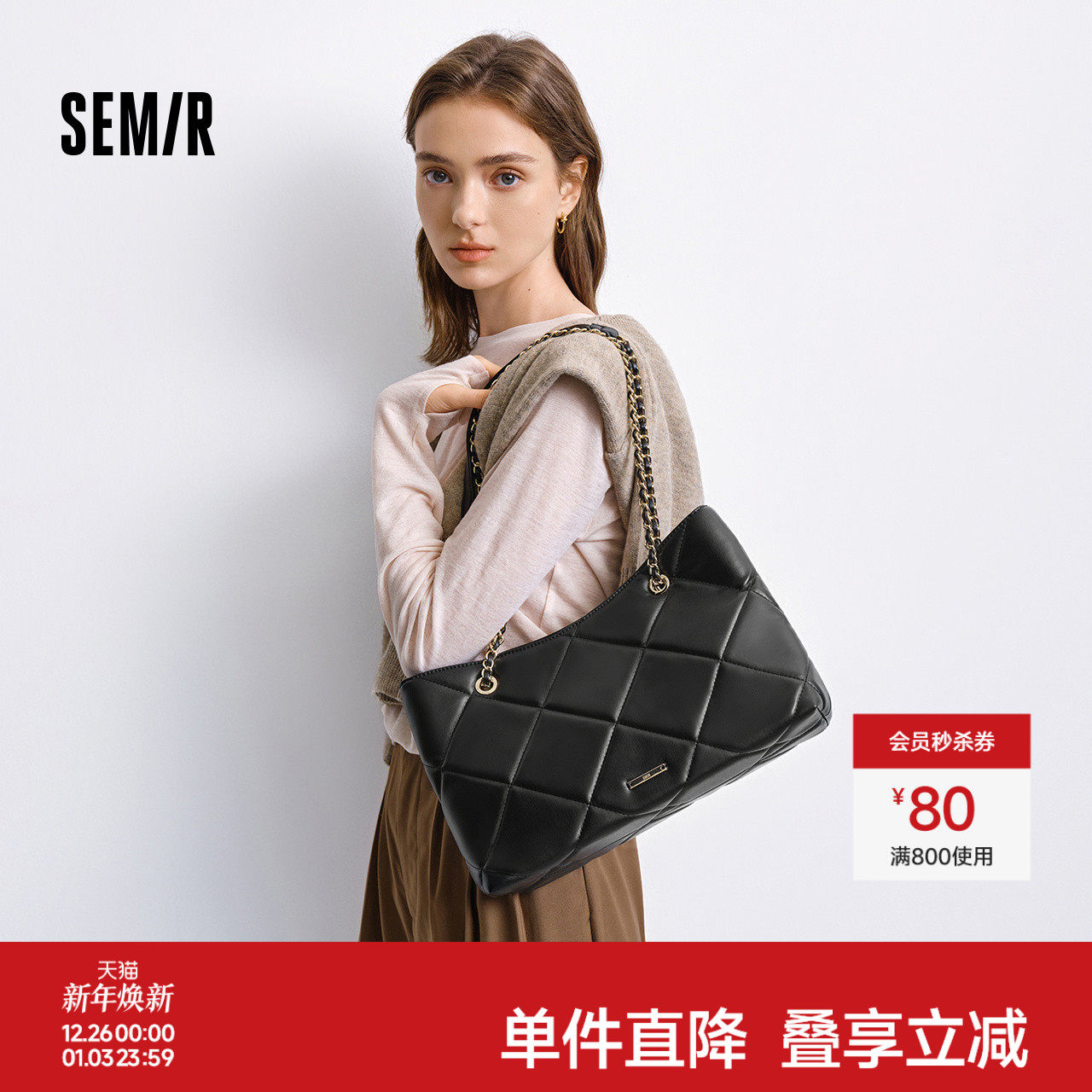 森马包包女托特包菱格链条包大容量斜挎包2025新款单肩包通勤质感