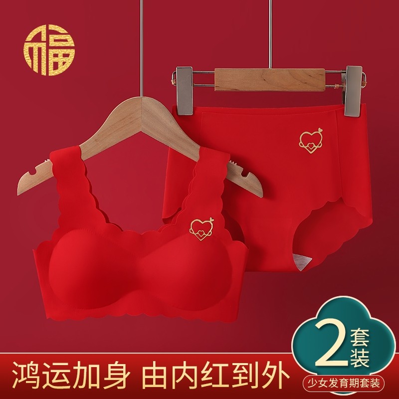 2026本命年大红少女内衣套装文胸内裤背心内衣胸罩文发育期新年