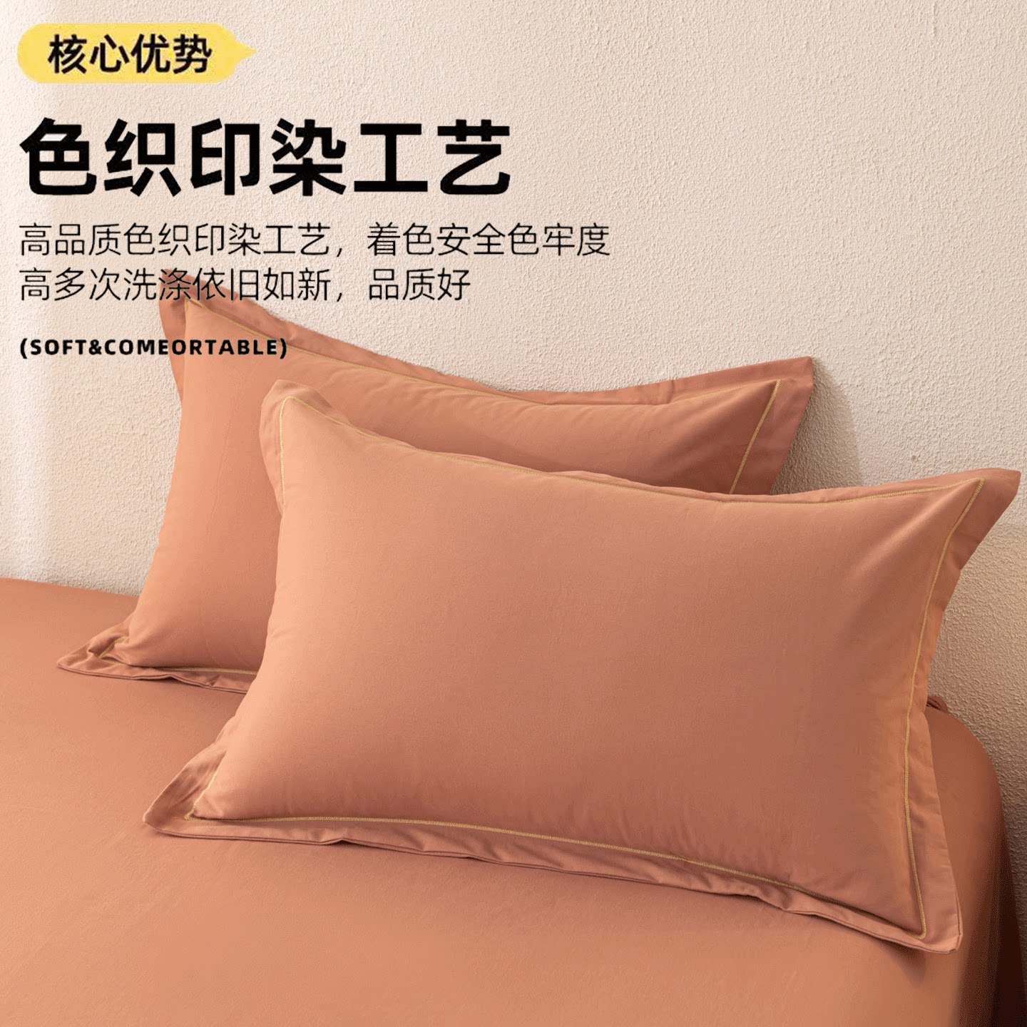 加厚纯棉枕套A类全棉枕头套家用48x74成人纯色一对装枕芯内胆套