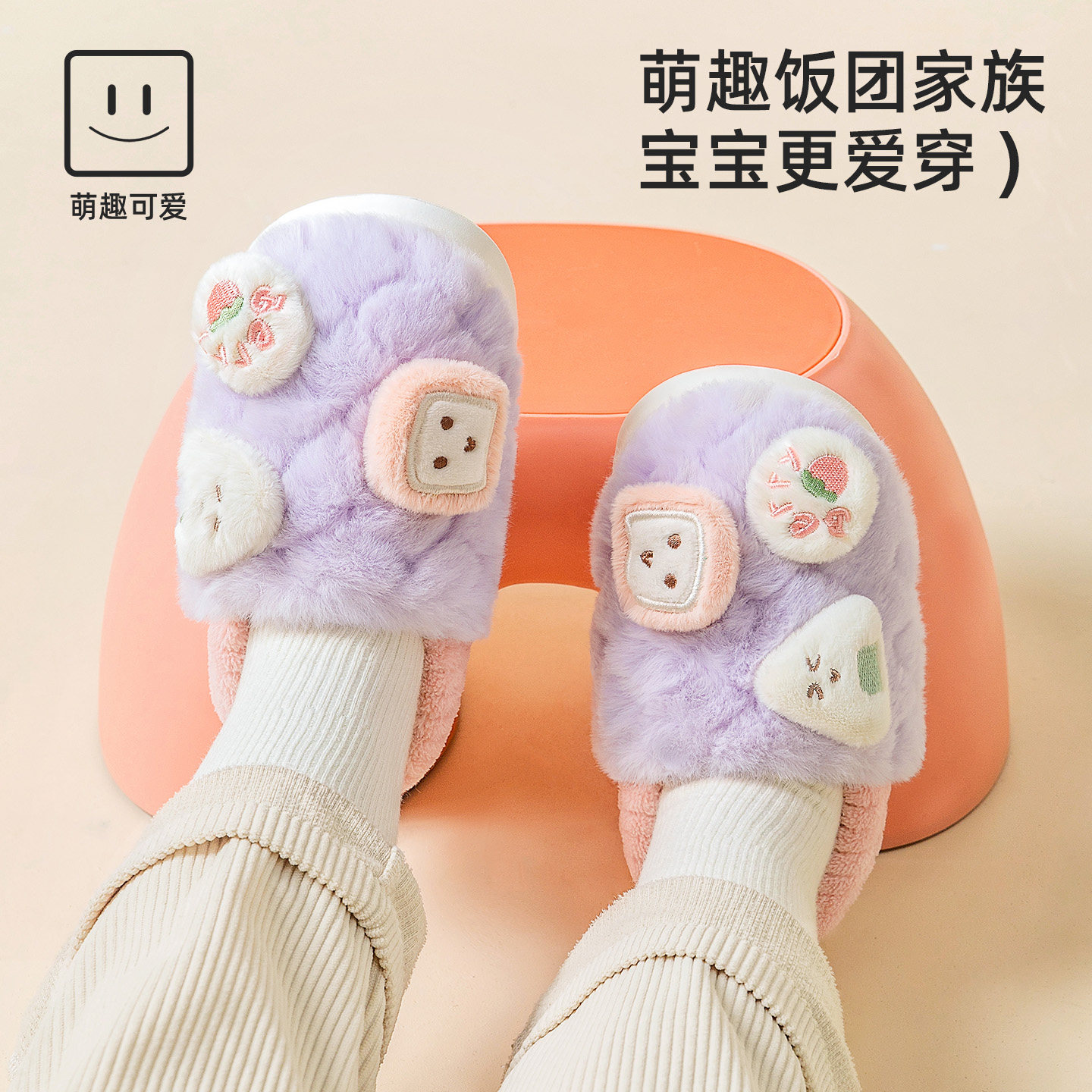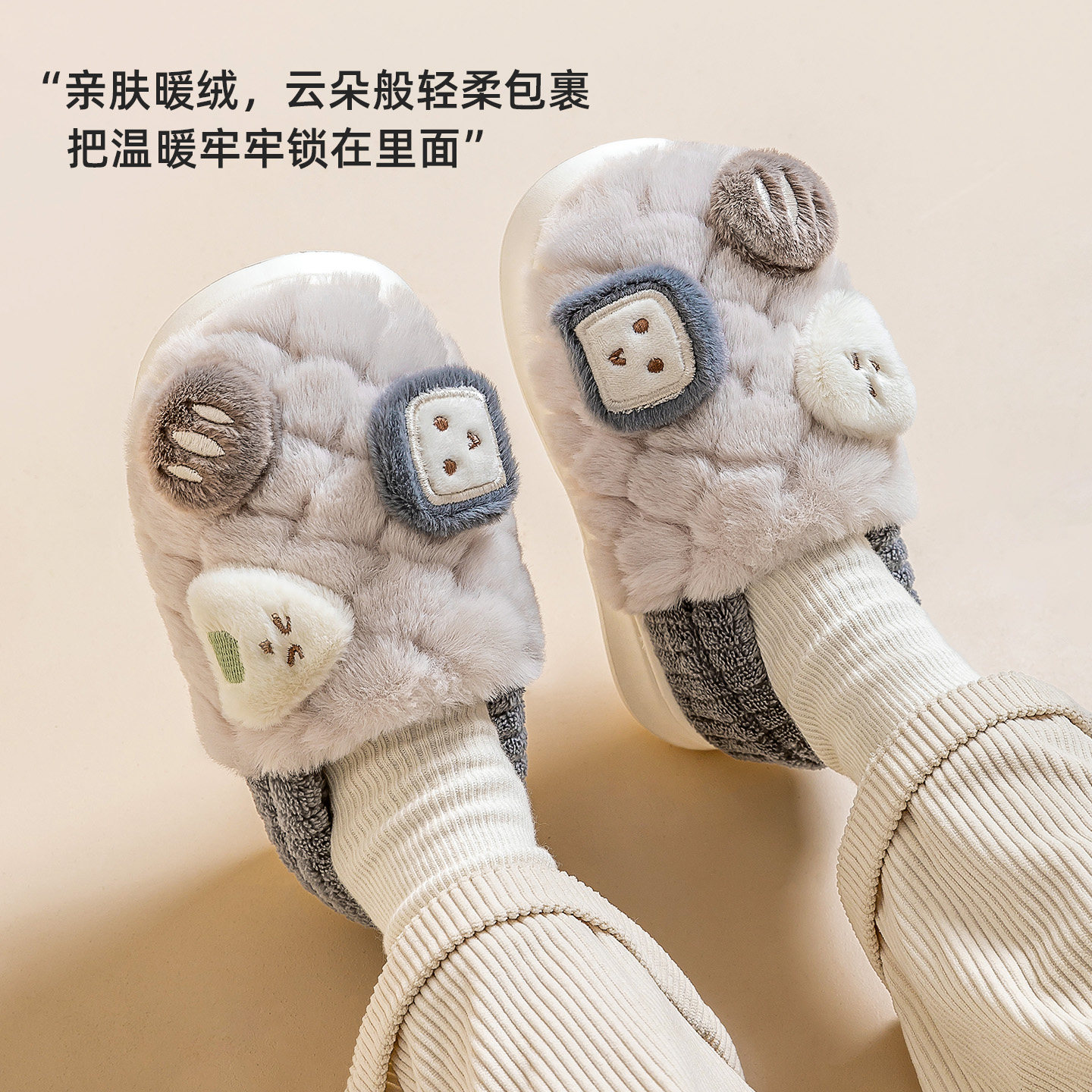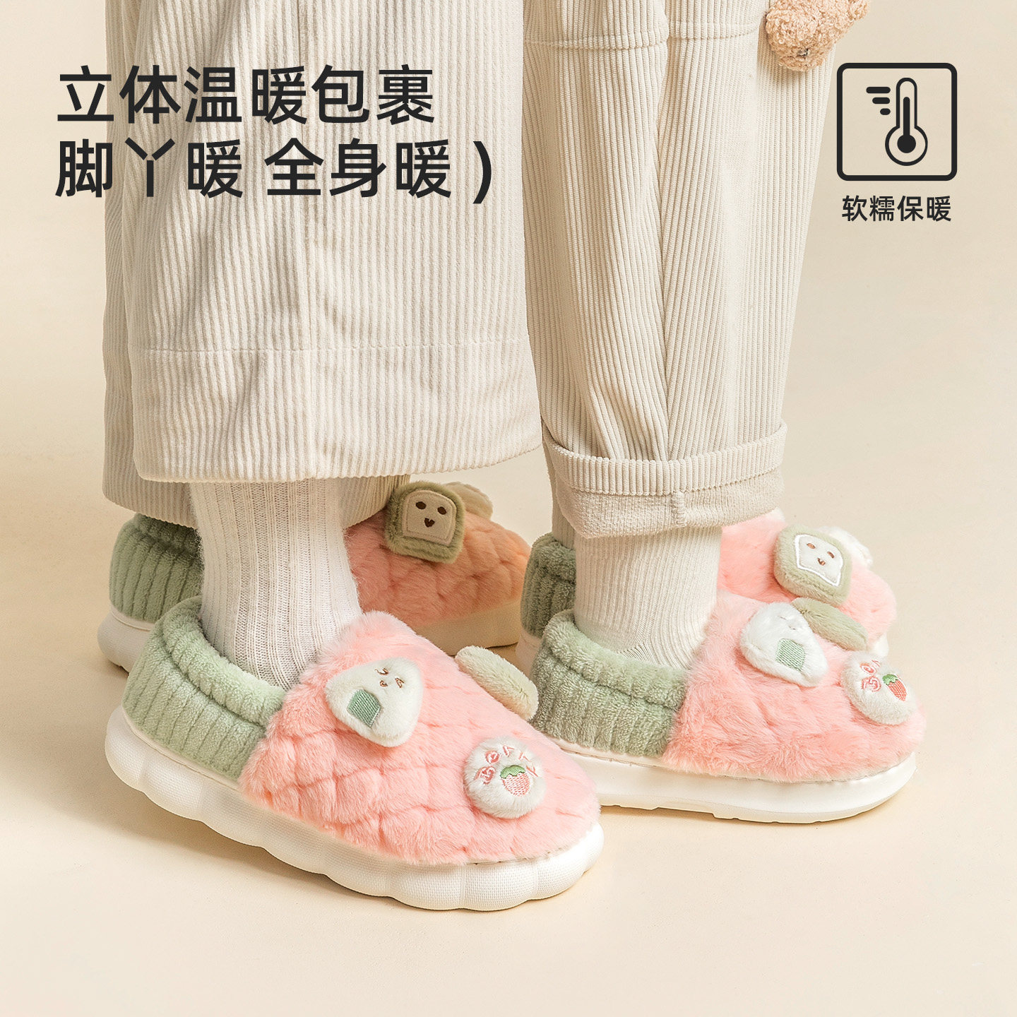红豆踩屎感棉拖鞋女士秋冬季室内家居2025新款毛绒保暖情侣棉拖男