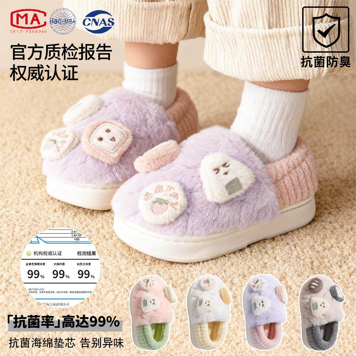 洁丽雅儿童棉拖鞋女童冬季2025新款家居棉鞋亲子抗菌毛毛拖鞋男孩