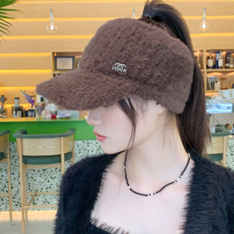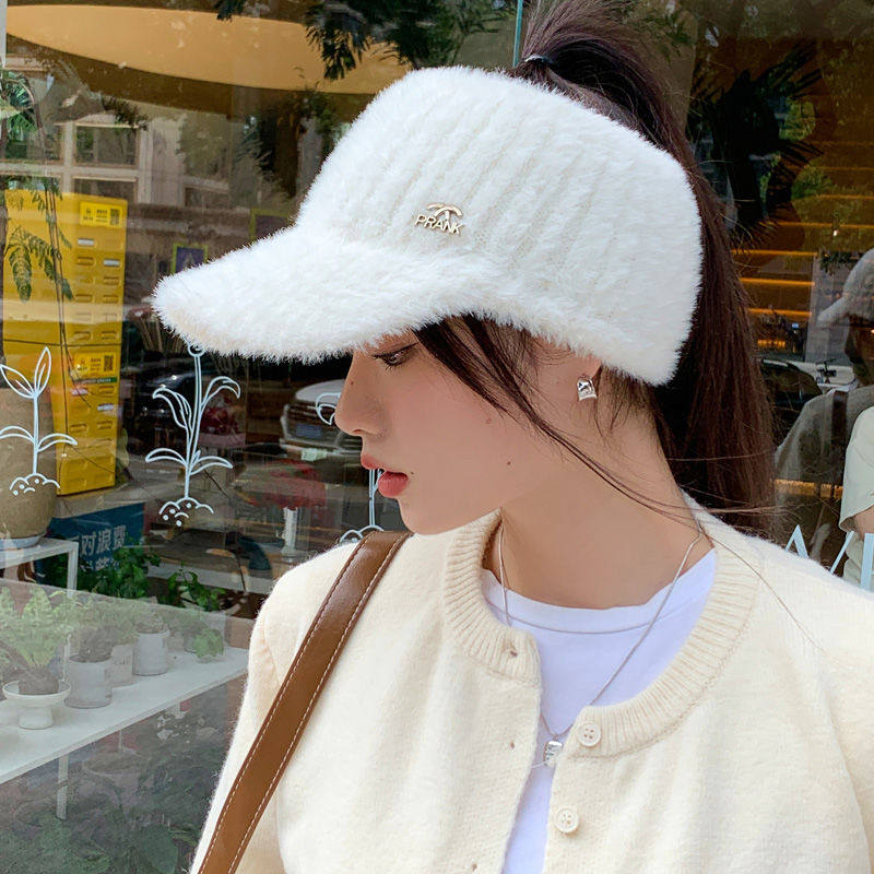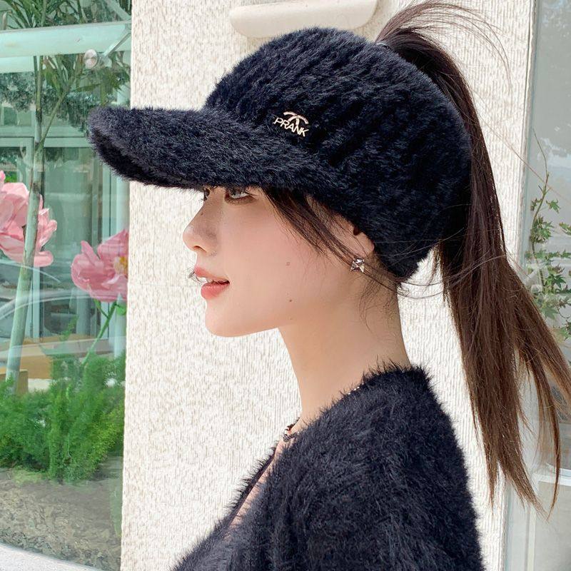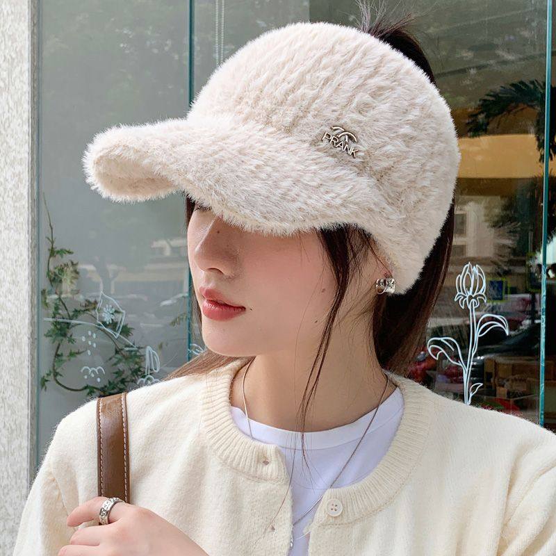 空顶毛绒帽子女秋冬季百搭护耳保暖仿貂绒针织帽户外跑步鸭舌帽潮