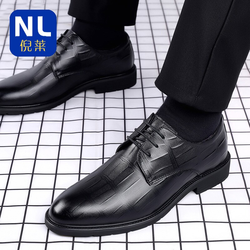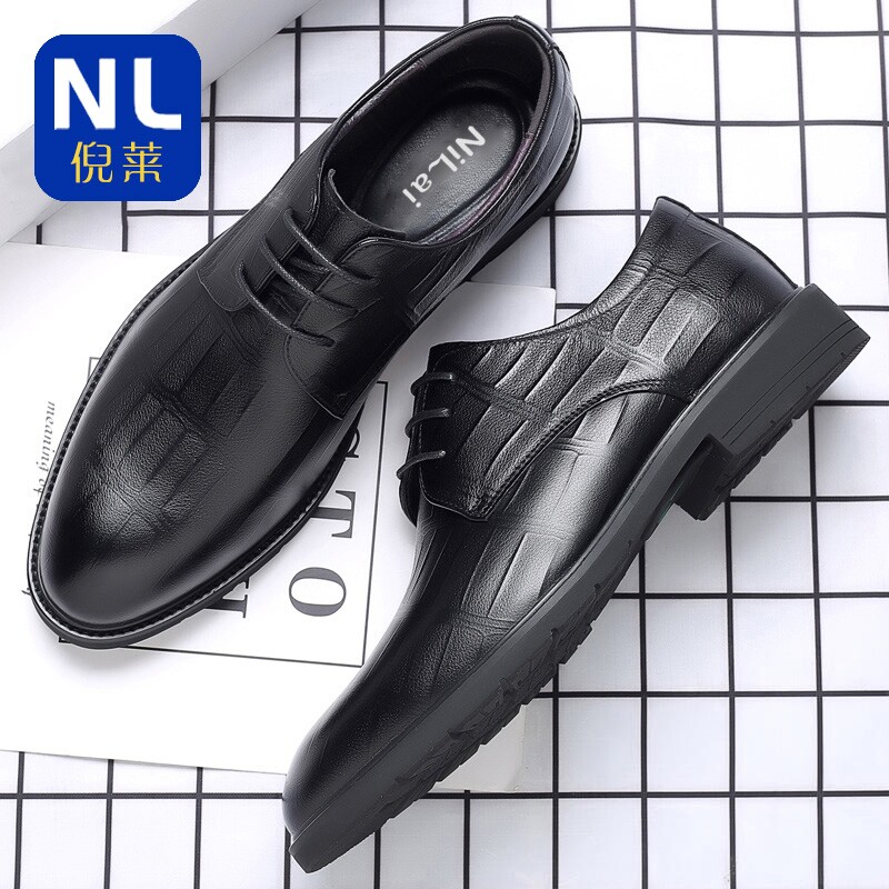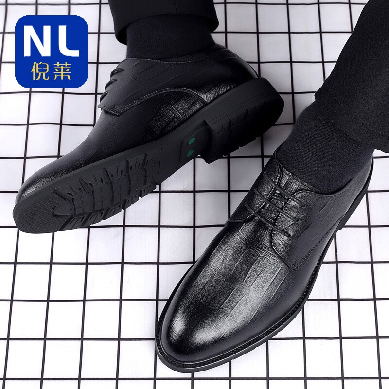 皮鞋男士新款商务正装真皮秋季透气英伦韩版尖头新郎结婚鞋内增高